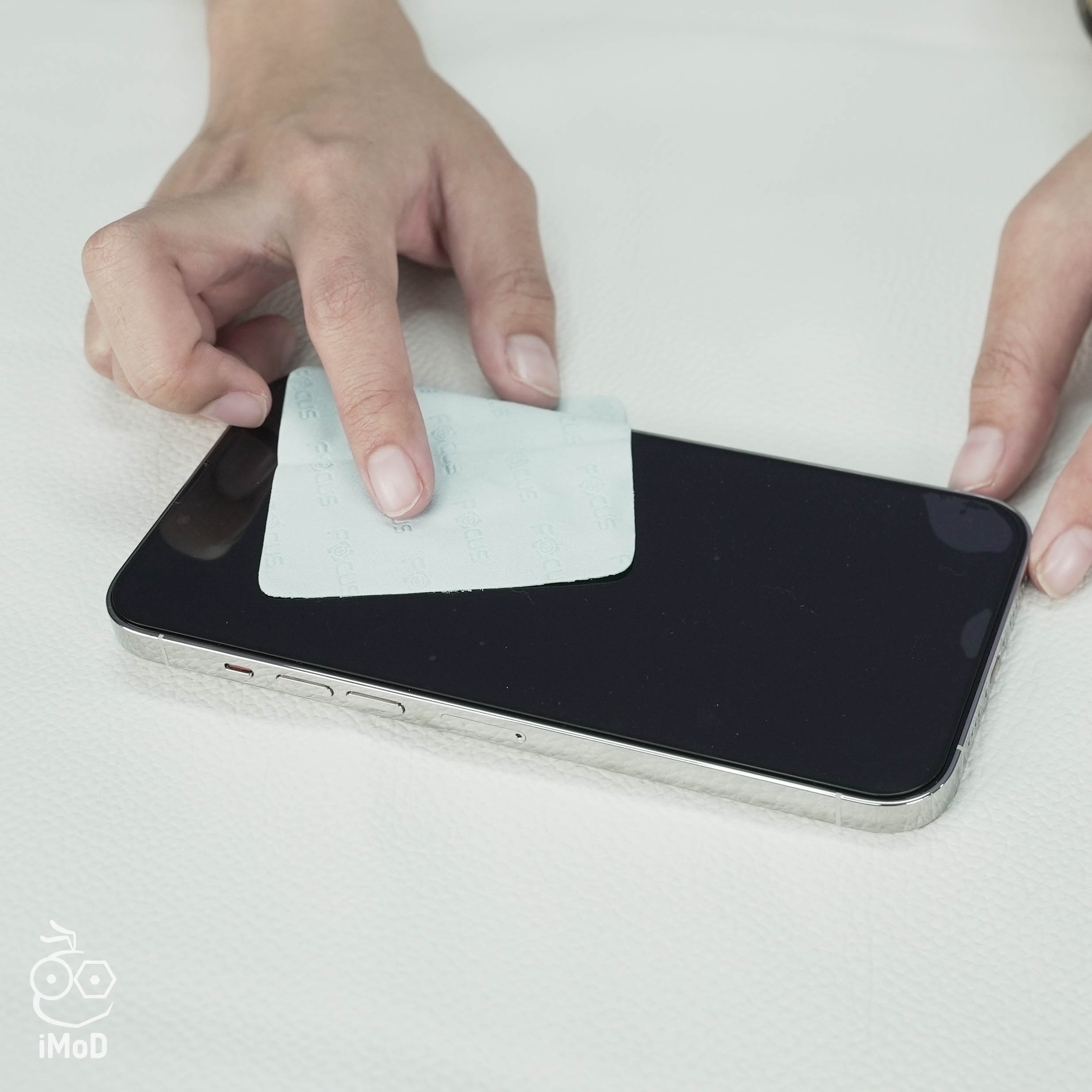 วิธีการติดฟิล์มกระจกนั้นสามารถทำได้ง่าย ๆ เลย โดยขั้นตอนแรกให้ทำความสะอาดหน้าจอ iPhone ของเราให้สะอาด โดยใช้ Cleaning Wipe และเช็ดด้วยผ้าไมโครไฟเบอร์