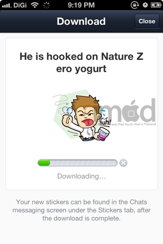 ทำการดาวน์โหลดให้เรียบร้อย (คราวนี้ก็เท่ากับว่าเราได้ซื้อ Sticker ลายนี้เอาไว้แล้ว ต่อไปก็ดาวน์โหลดตอนไหนก็ได้)