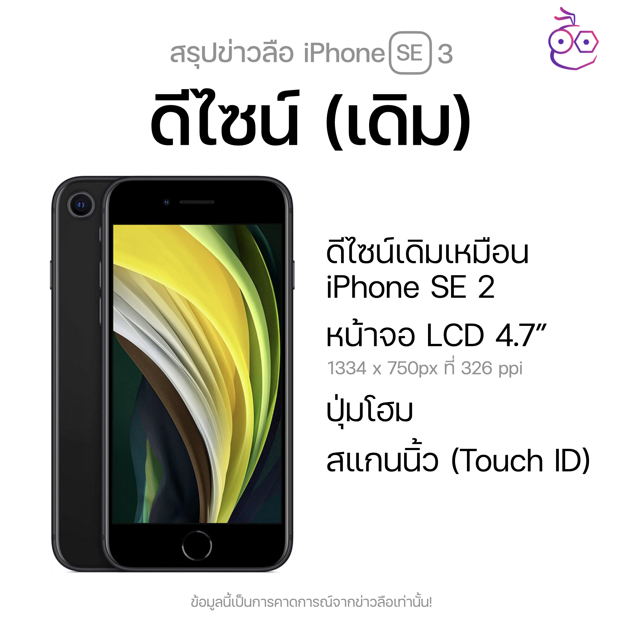 - ดีไซน์เดิมเหมือน iPhone SE 2, iPhone 8