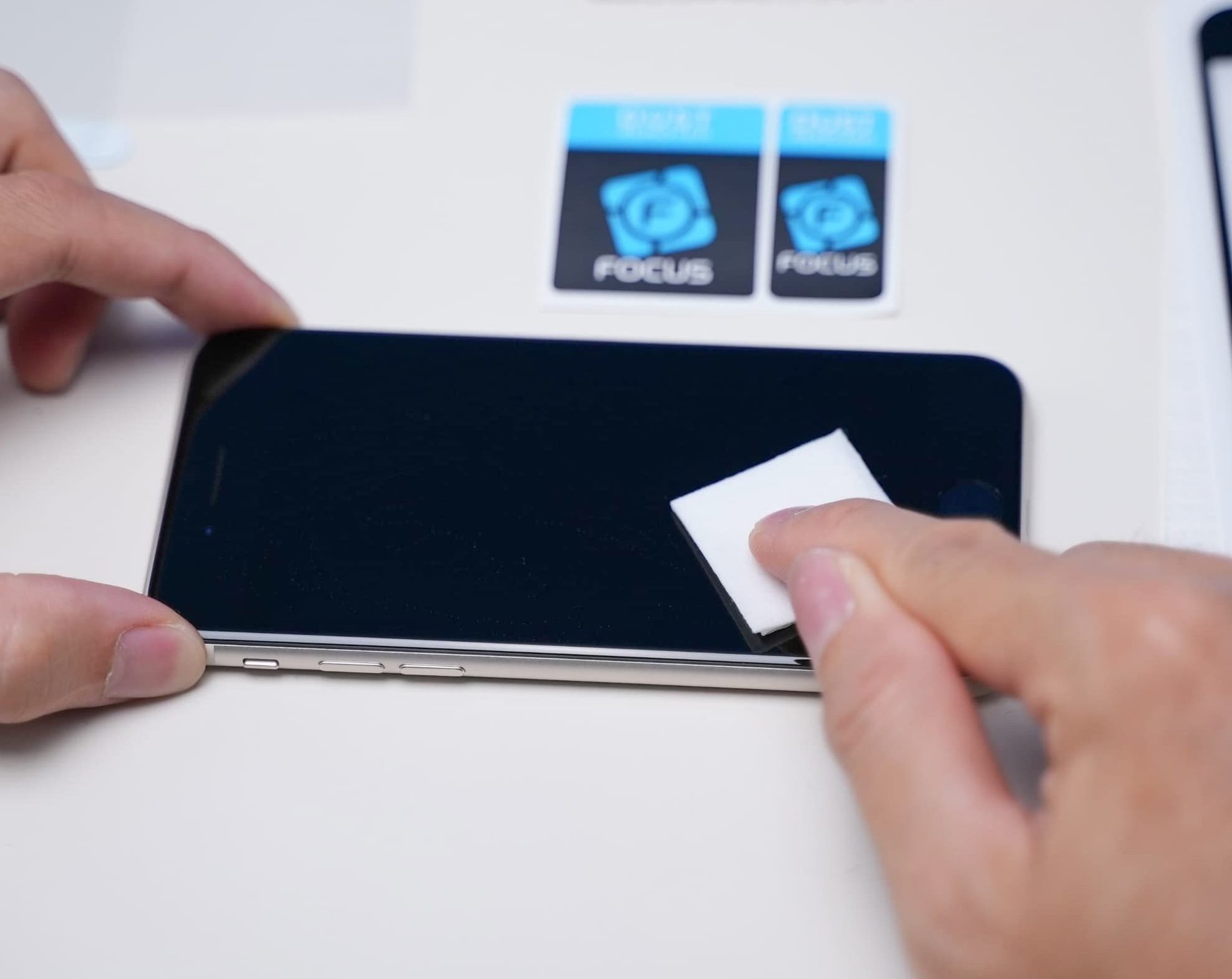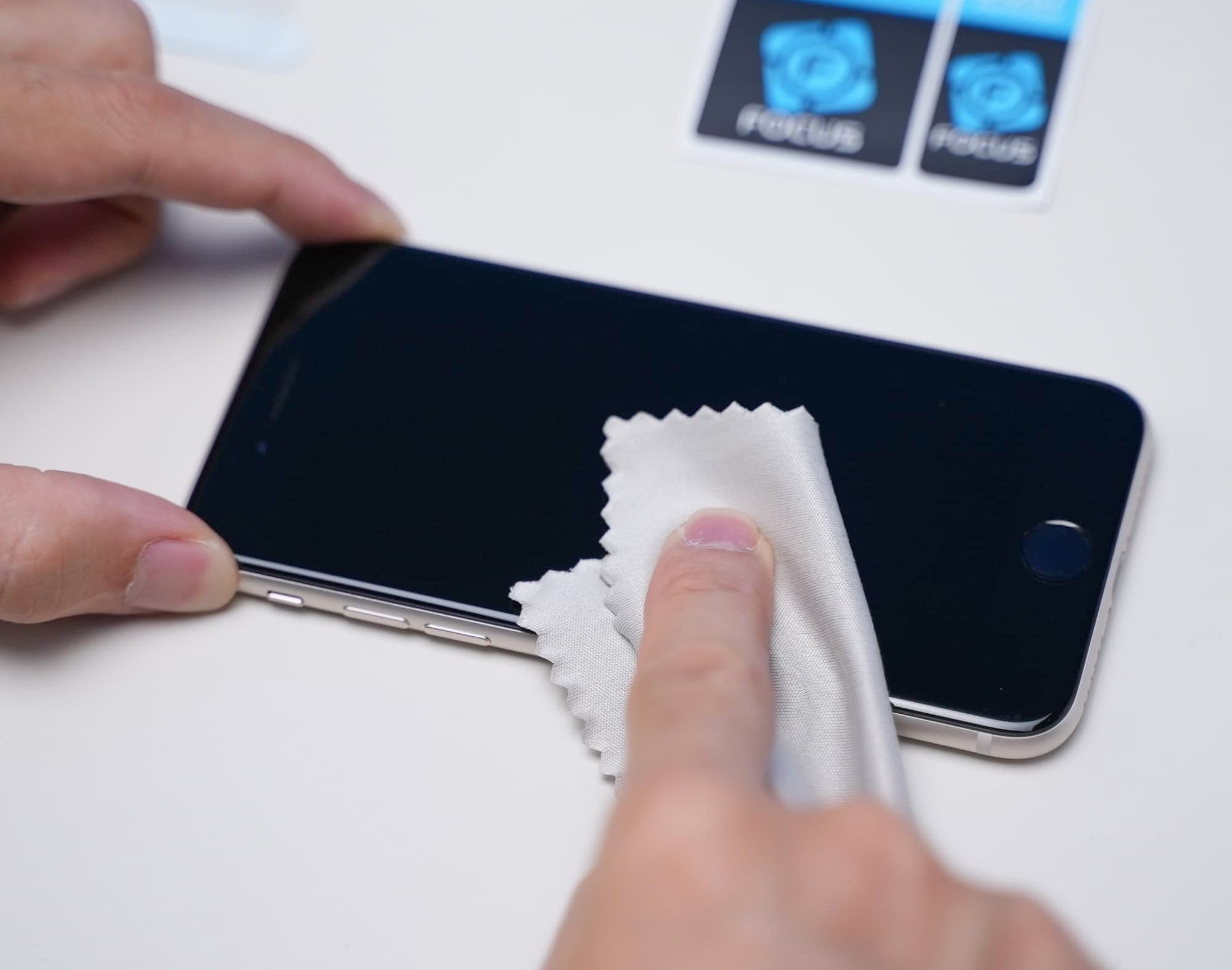 โดยขั้นตอนแรกให้ทำความสะอาดหน้าจอ iPhone ของเราให้สะอาด ใช้ Cleaning Wipe เช็ดคราบสกปรกบนหน้าจอออกให้หมด จากนั้นเช็ดด้วยผ้าไมโครไฟเบอร์ให้แห้ง