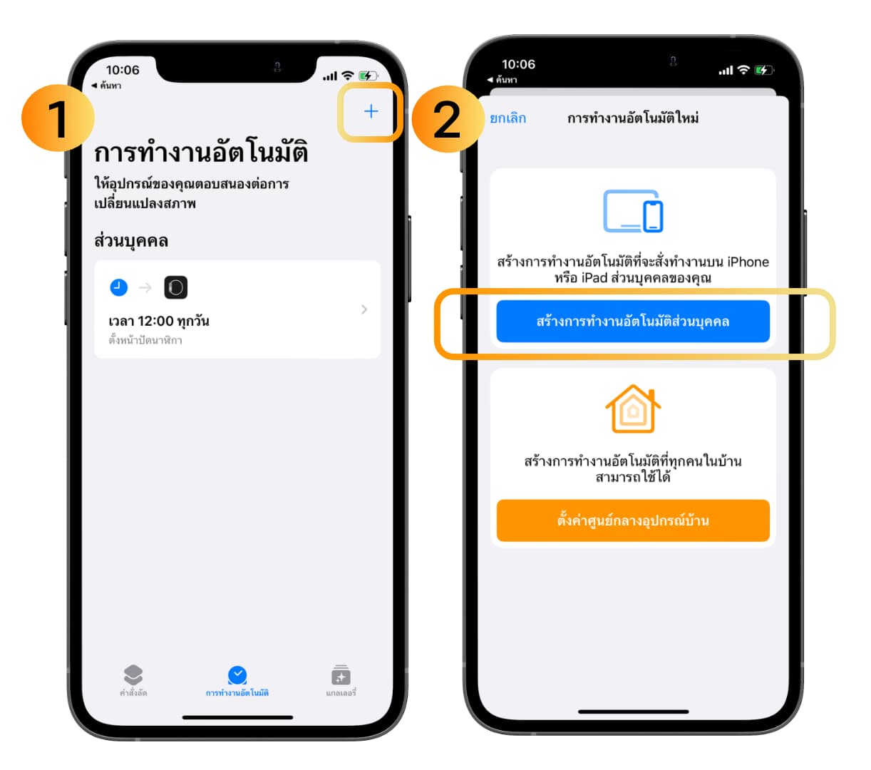 - ไปที่หน้าการทำงานอัตโนมัติ จากนั้นแตะเครื่องหมาย + เพื่อเพิ่มการทำงานอัตโนมัติใหม่