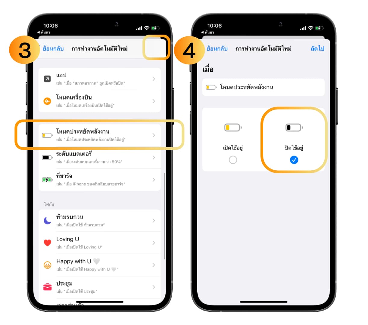 คำสั่งลัด ตั้งค่าให้ iPhone เปิดโหมดพลังงานตลอดเวลา