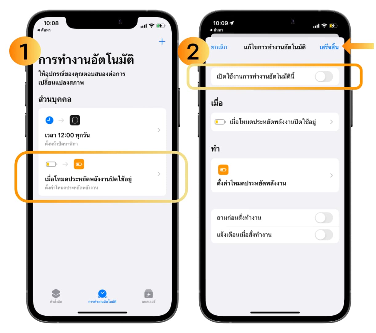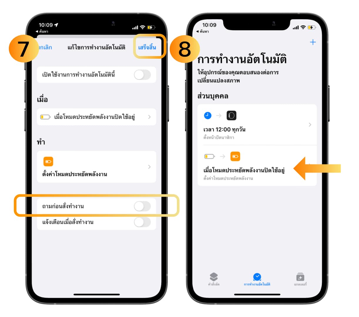 8. เราก็จะได้คำสั่งลัดการทำงานอัตโนมัติที่จะช่วยเปิดโหมดประหยัดพลังงานให้เราตลอดเวลา