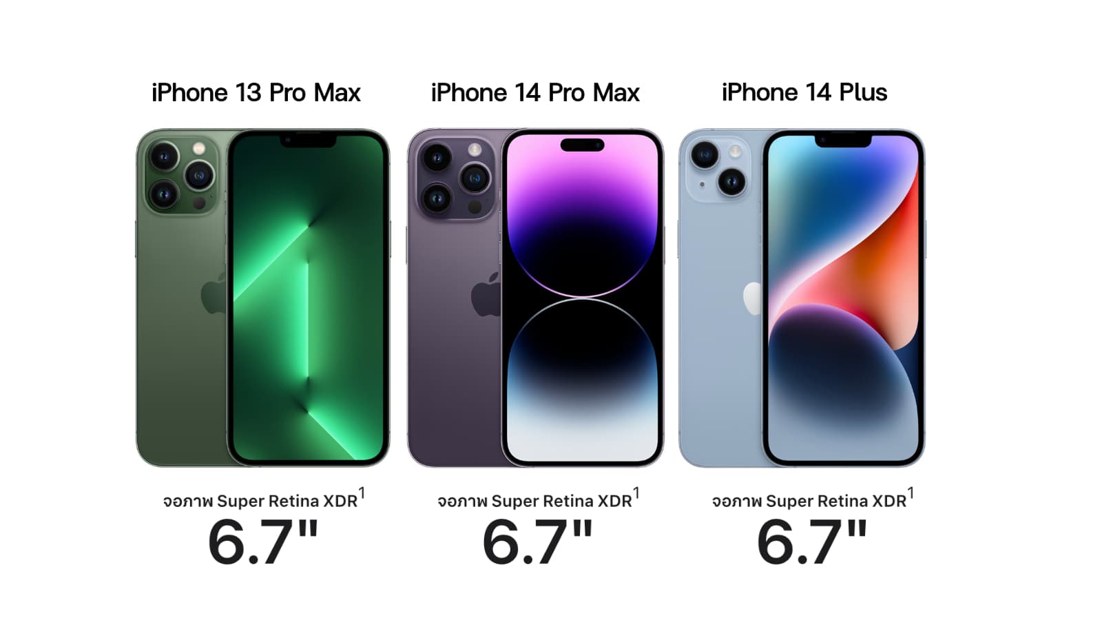ส่วนหน้าจอ Phone 13 Pro Max, iPhone 14 Pro Max และ iPhone 14 Plus มีขนาด 6.7″ เท่ากัน ดังนั้น แปลว่าสามารถใช้ฟิล์มร่วมกันได้