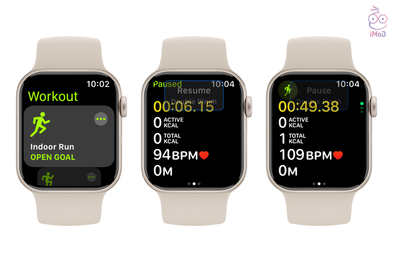 เปิดแอปออกกำลังกาย (Workout) บน Apple Watch และแตะเริ่มออกกำลังกาย > เมื่อต้องการหยุดออกกำลังกายชั่วคราว ก็ให้ทำการจีบนิ้ว 2 ครั้ง และถ้าหากต้องการเริ่มออกกำลังกายต่อ ก็ให้ทำการจีบนิ้ว 2 ครั้งอีกครั้ง