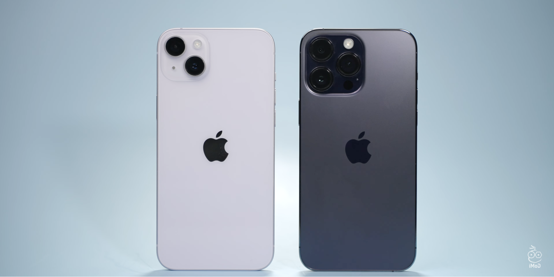 เทียบด้านหลังจะเห็นว่ากล้อง iPhone 14 Plus จะเป็นแบบกล้องคู่ ส่วน iPhone 14 Pro Max นั้น จะมีกล้องทั้งหมด 3 ตัว