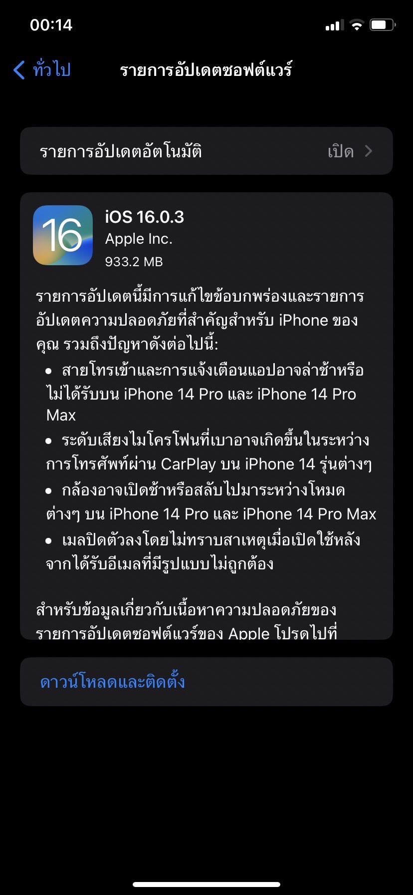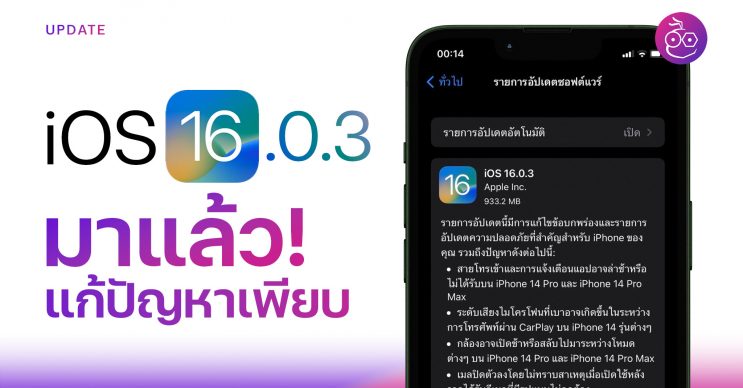Apple ปล่อย iOS 16.0.3 ให้อัปเดต มาพร้อมการแก้ปัญหาหลายจุด! สำหรับ iPhone 14 เช่น แจ้งเตือนช้า เสียงไมค์เบาตอนโทร CarPlay และอื่น ๆ