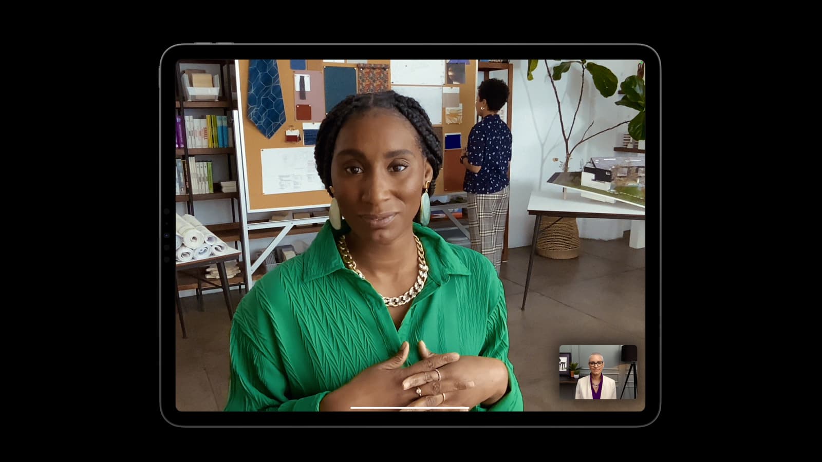 กล้องหน้า TrueDepth, Ultra-wide 12MP มีฟีเจอร์ “จัดให้อยู่ตรงกลาง” (Center Stage) แพนกล้องตามผู้ใช้เช่นเดิม มี HDR อัจฉริยะ 4 สำหรับการถ่ายภาพที่ดีขึ้น