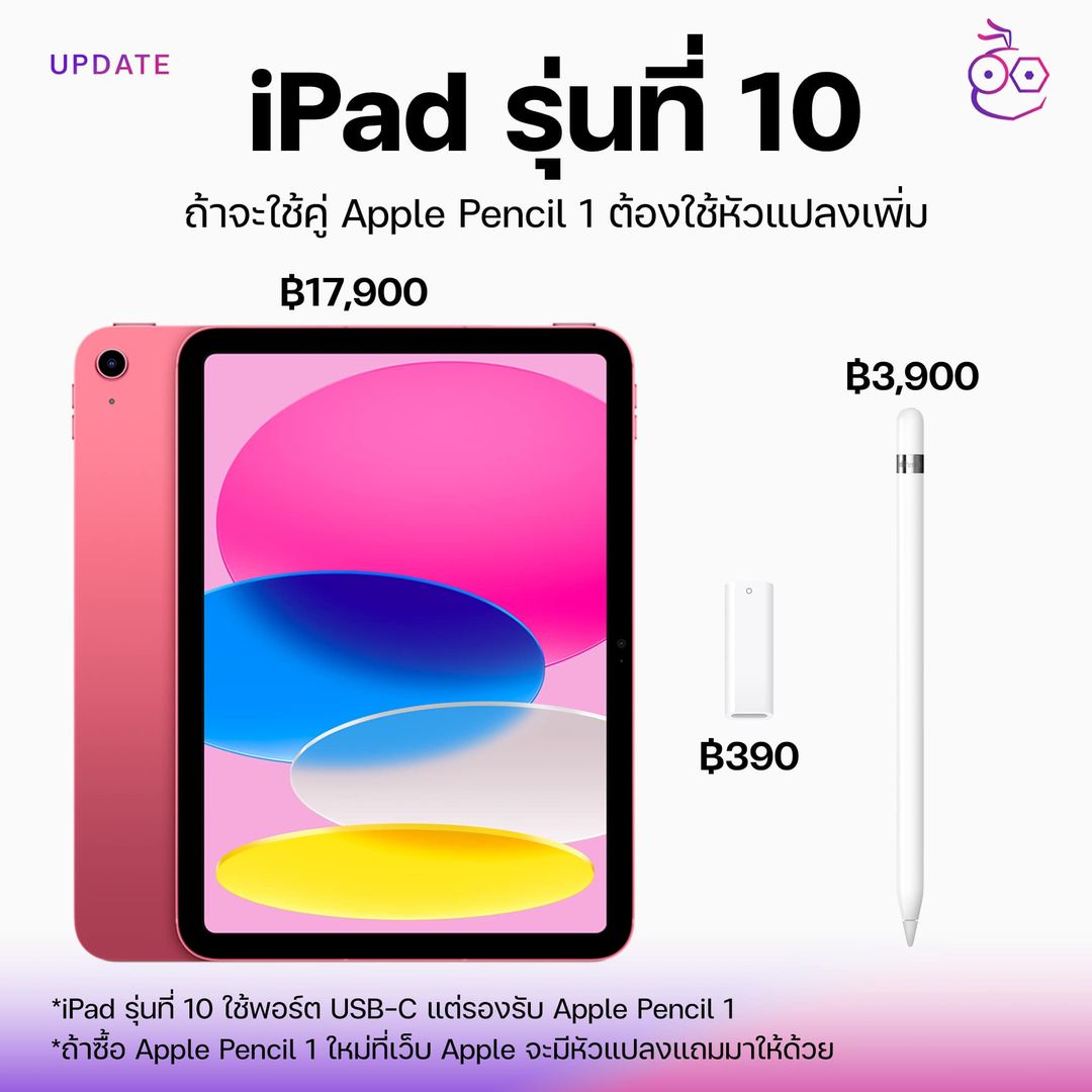 - รองรับ Apple Pencil รุ่นที่ 1 (ต้องซื้อหัวแปลงเพิ่ม ฿390)