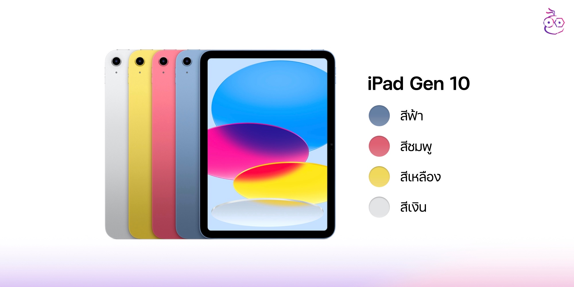 สำหรับ iPad รุ่นที่ 10 ดีไซน์ออกมาในโทนสีสันสดใส ซึ่งมีให้เลือก 4 สีด้วยกัน ได้แก่ สีฟ้า, สีชมพู, สีเหลือง, สีเงิน