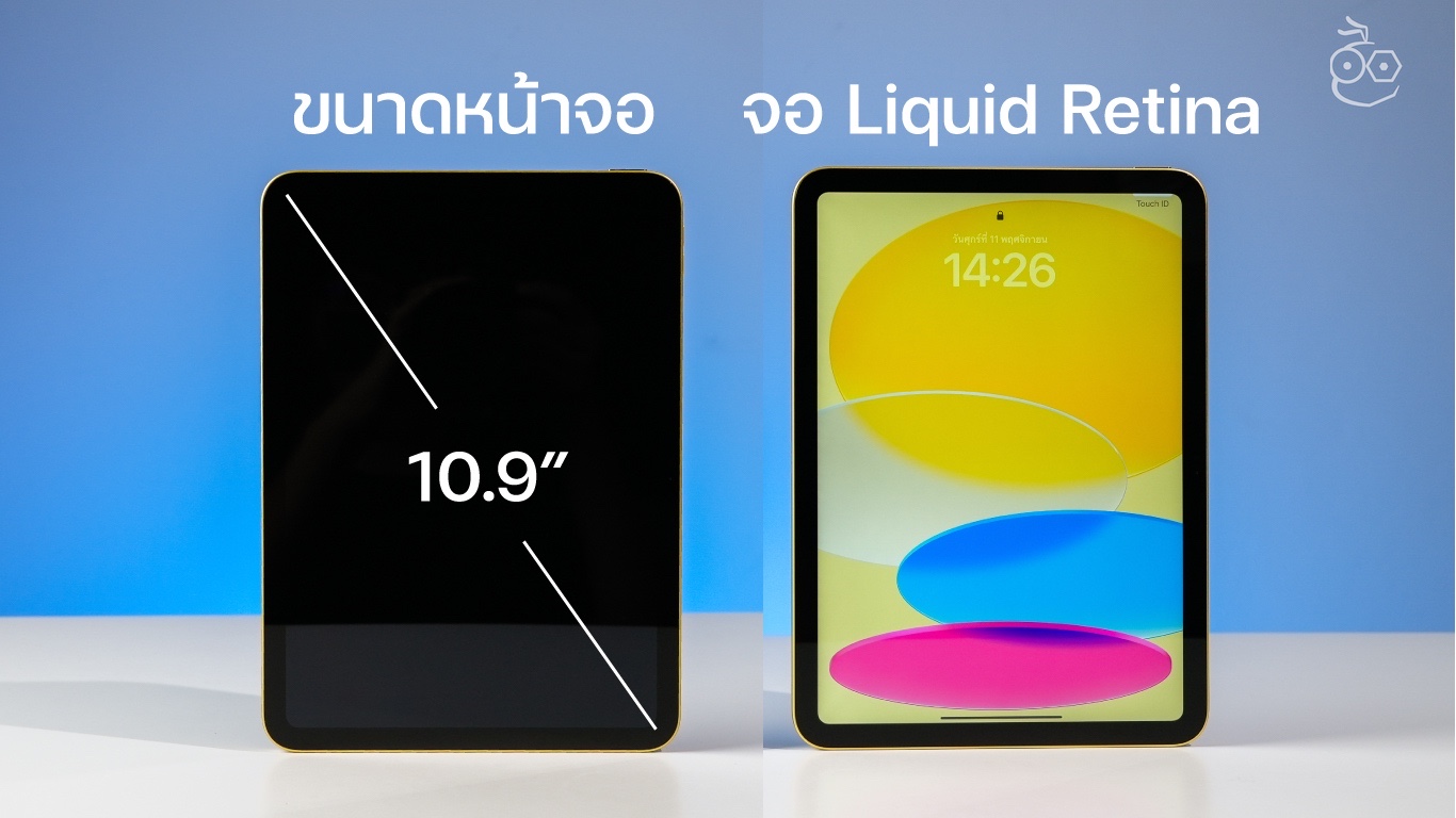 iPad รุ่นที่ 10 อัปเกรดหน้าจอใหม่เป็นแบบ Liquid Retina ขนาด 10.9″ ความละเอียด 2360 x 1640 ที่ 264 ppi ความสว่างสูงสุด 500 นิต ช่วยให้มองเห็นคอนเทนต์ได้มีสีสันสวยงามมากขึ้น