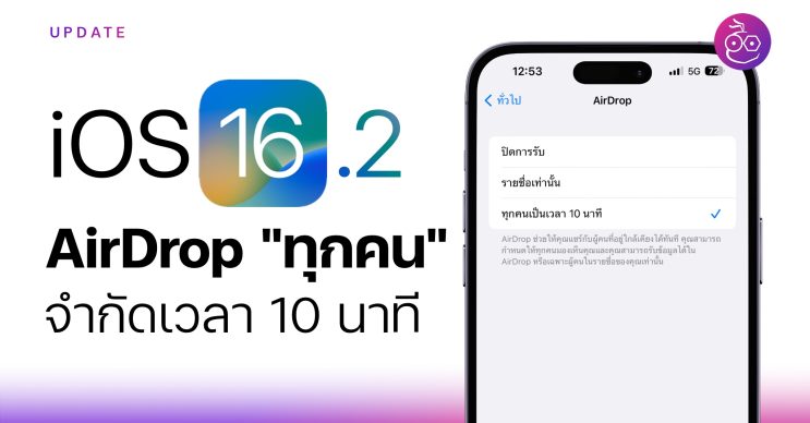 iOS 16.2 เปิด AirDrop แบบ “ทุกคน” จะเปิดใช้ได้นานสุด 10 นาทีต่อครั้ง