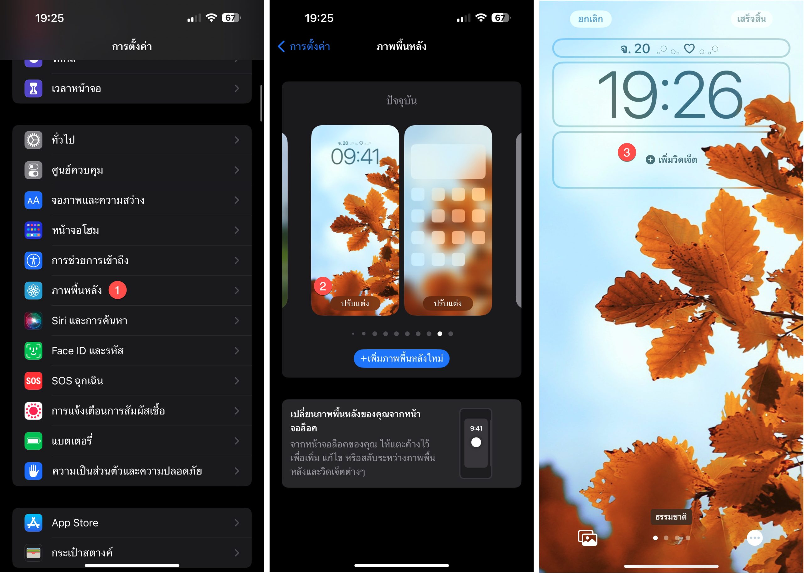 การตั้งค่าวิดเจ็ตในหน้าจอล็อคของ iOS 16 ทำง่ายมาก ๆ โดยไปที่การตั้งค่า > ภาพพื้นหลัง > แตะปรับแต่ง > แตะเพิ่มวิดเจ็ต