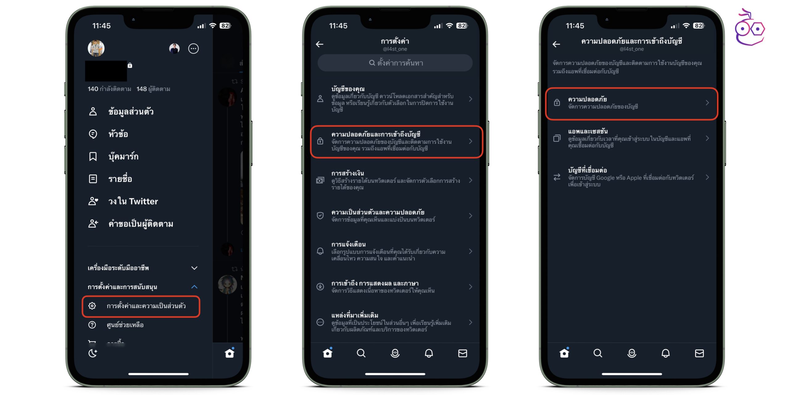 - เครื่องโทรศัพท์ที่ล็อคอิน Twitter