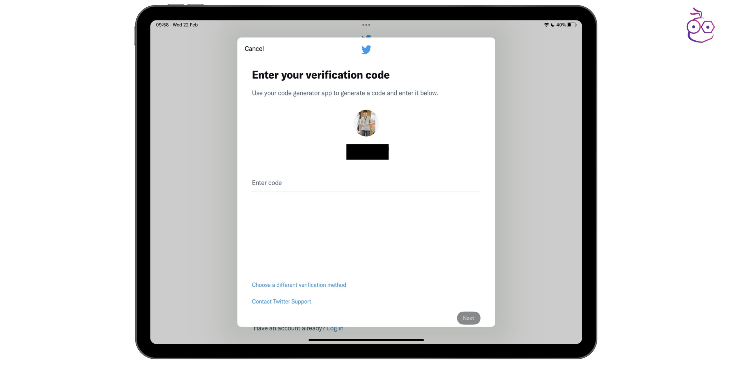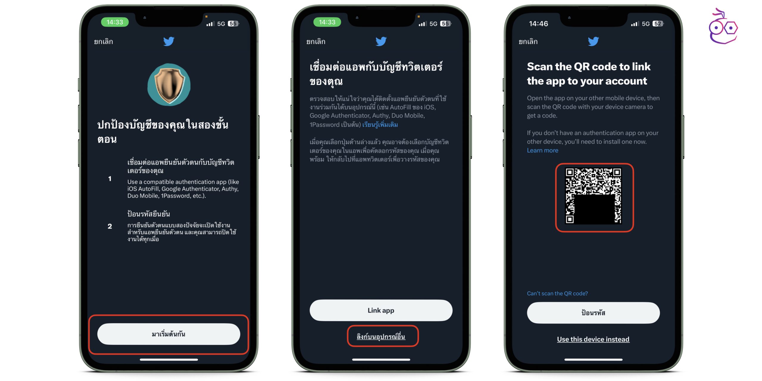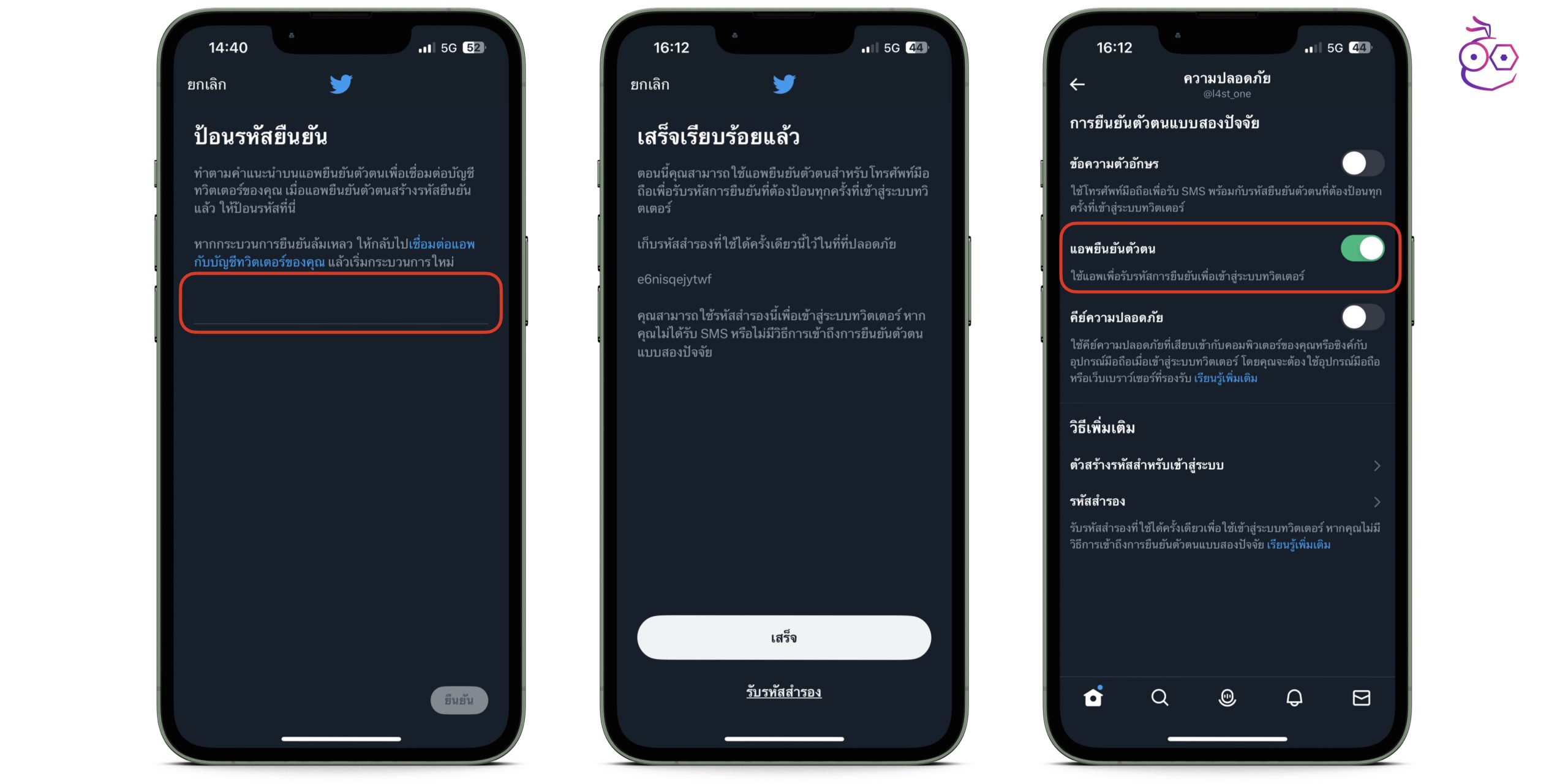 - กลับมาที่ Twitter เลือกป้อนรหัส