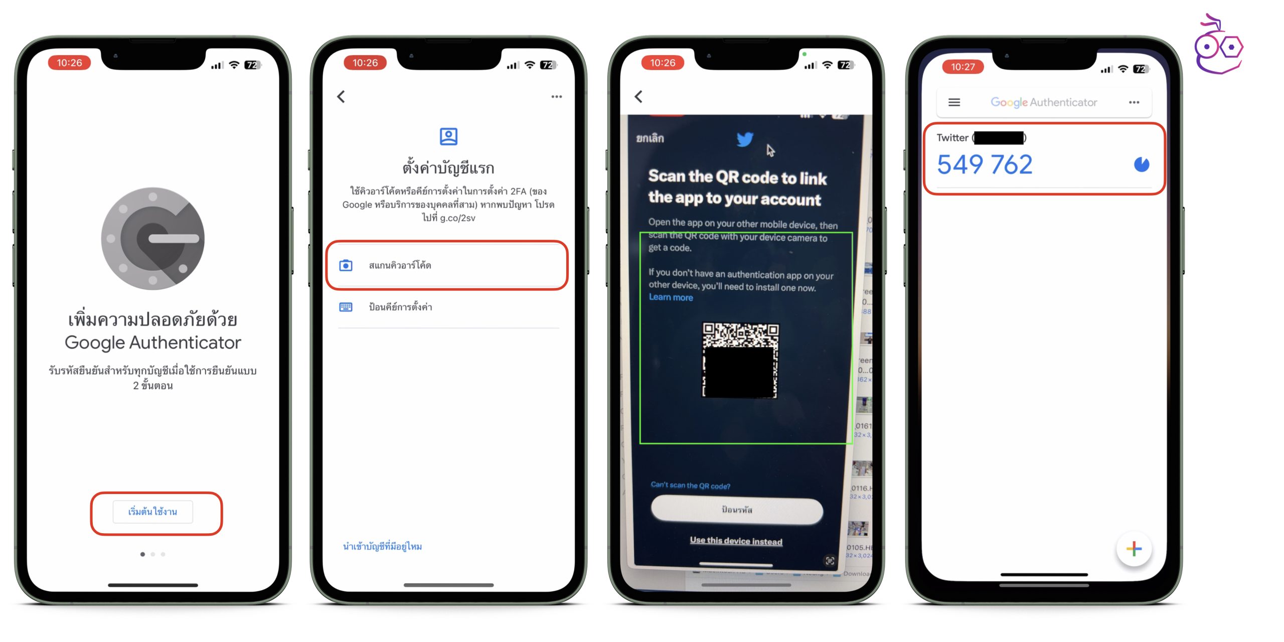 - เปิดแอป Google Authenticator ในโทรศัพท์