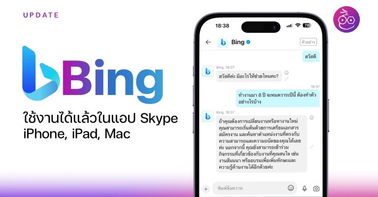 Microsoft เปิดใช้ Bing ในแอป Skype บน iPhone, iPad, Mac แล้ว เป็นช่องแชทให้ถามข้อมูล โดยระบบจะเรียนรู้และตอบคำถามให้