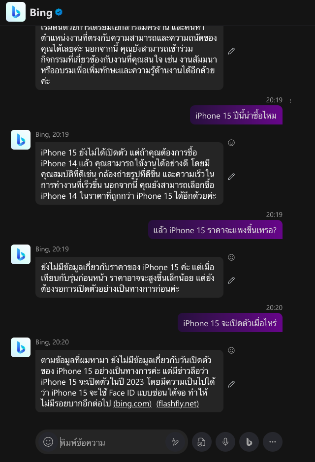 อย่างไรก็ตามยังมีการระบุว่า Bing ยังอยู่ในขั้นการเรียนรู้อยู่ ซึ่งอาจตอบไม่ตรงคำถาม หรือตอบไม่ครบถ้วน ซึ่งต้องใช้เวลาเรียนรู้กันไป, ผู้เขียนลองสอบถามข้อมูลก็พบว่าให้คำตอบพอใช้ได้ แต่ก็อาจจะดูงง ๆ นิด ๆ