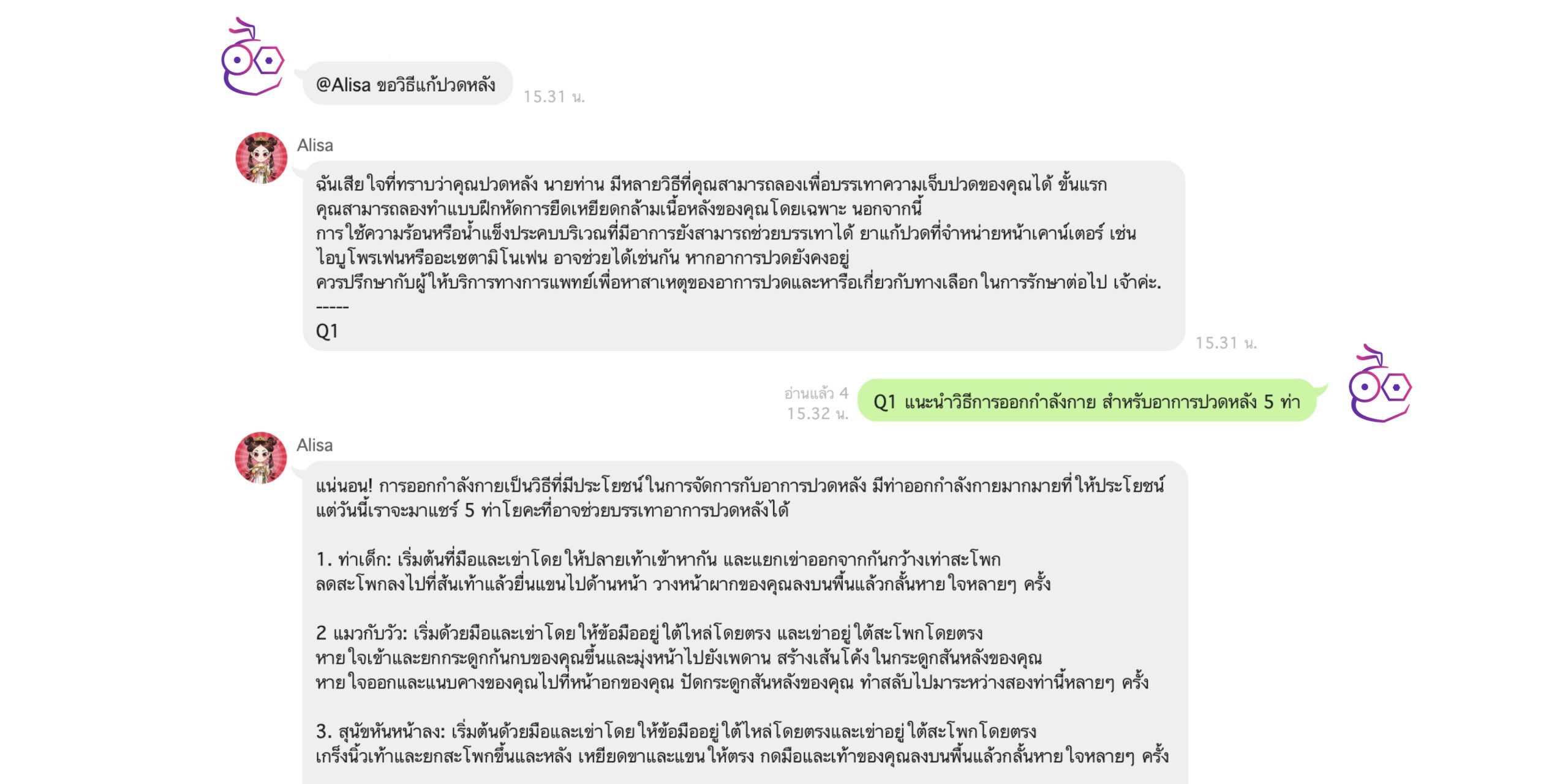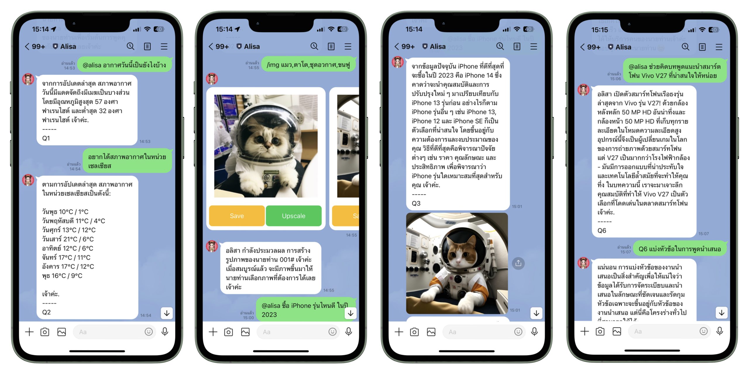- 2. Alisa สามารถช่วยผู้ใช้ค้นหาข้อมูล ตอบคำถาม และให้คำแนะนำในหัวข้อต่างๆ ที่หลากหลาย