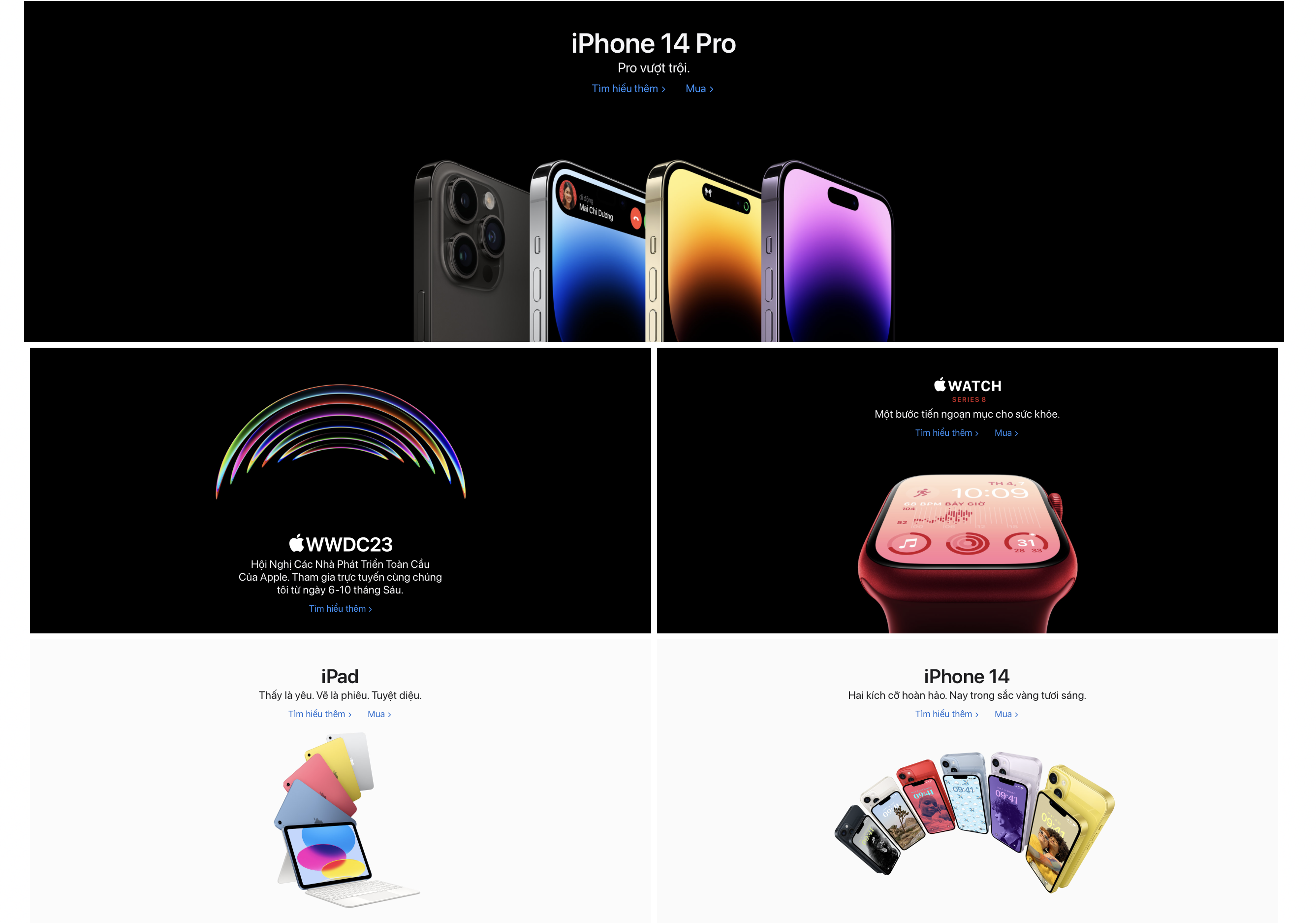 ลูกค้าในเวียดนามสามารถเลือกซื้อสินค้า ปรึกษาผู้เชียวชาญได้ที่เว็บไซต์ Apple เวียดนาม รองรับทั้งภาษาเวียดนามและภาษาอังกฤษ