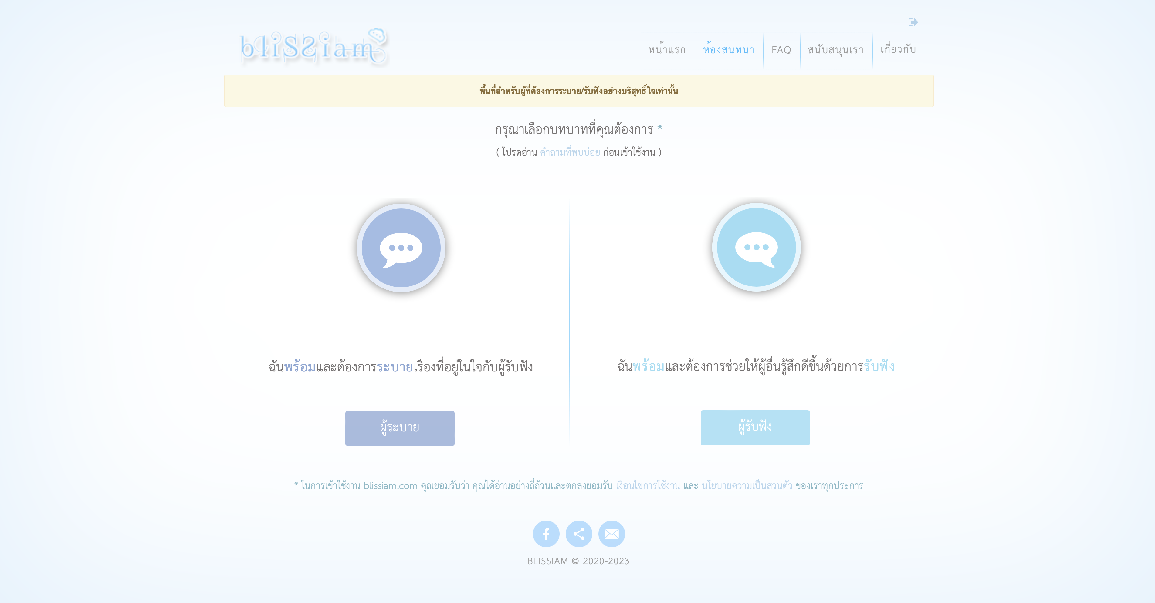 โดยเราต้องทำการล็อคอินก่อน หลังจากล็อคอินเสร็จแล้ว จะมีให้เลือกระหว่างผู้ระบายกับผู้รับฟัง