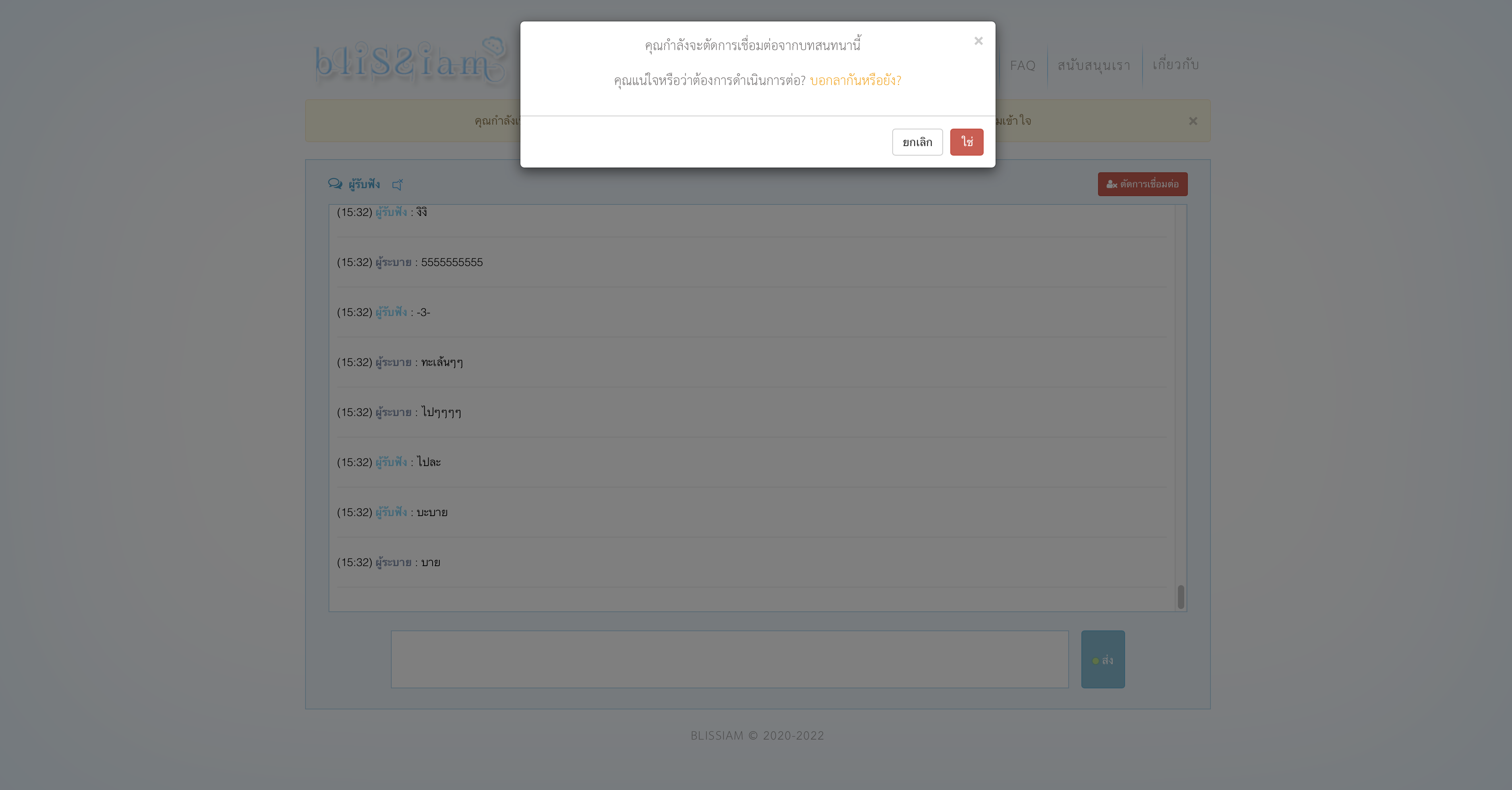 เวลาออกห้องให้เรากดตรงตัดการเชื่อมต่อ เลือก”ใช่”ระบบจะออกให้อัตโนมัติ หลังจากนั้นเว็บจะให้เรากด”ต่อไป”ก่อนถึงจะเริ่มห้องแชทใหม่ได้ และเรายังสามารถรายงานผู้ใช้งานที่พูดคำไม่สุภาพหรือไม่ชอบได้อีกด้วย