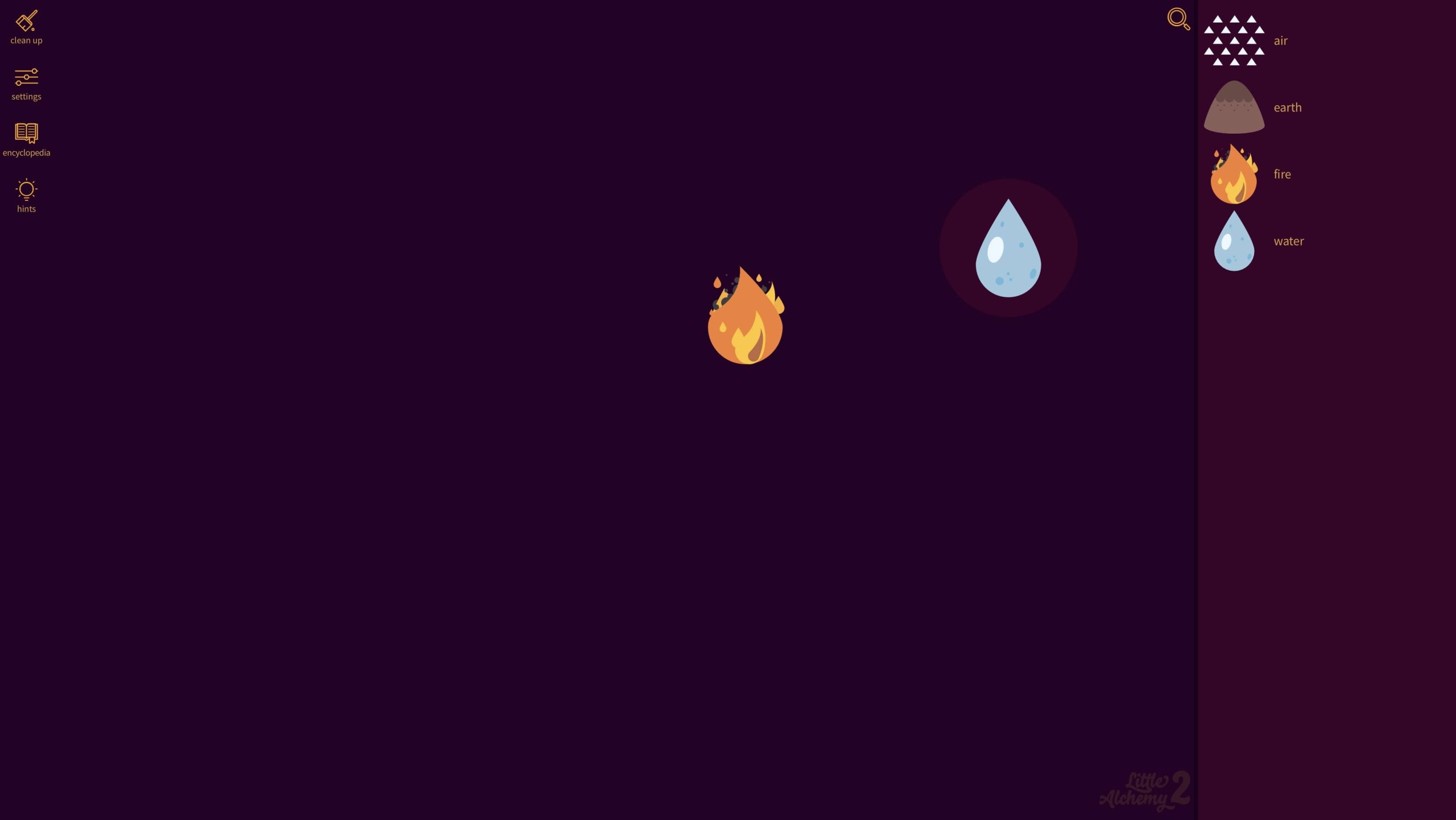 มาที่เว็บ Little Alchemy 2 หน้าเว็บจะเป็นหน้าโล่ง ๆ แล้วมีสารต่าง ๆ คือ Air, Eatrh, Fire, Water
