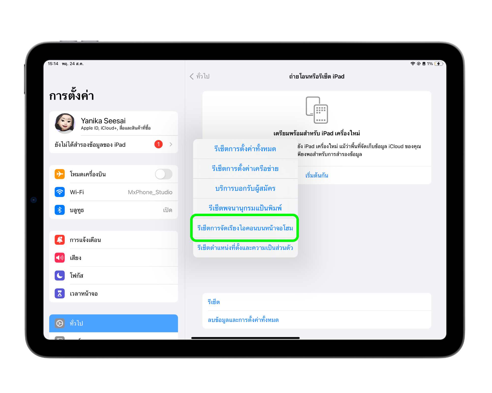 หลังรีเซ็ตหน้าจอโฮม