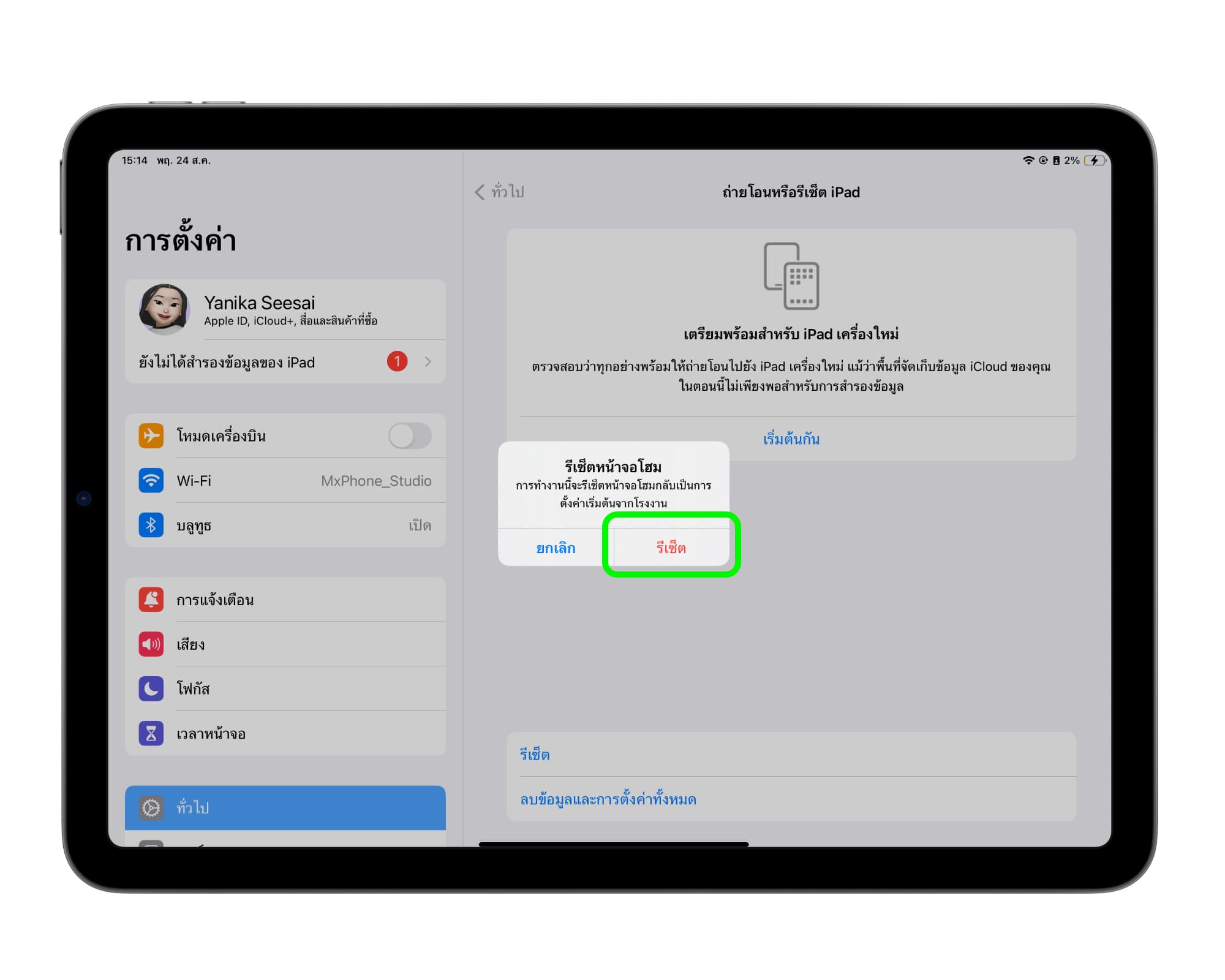 เข้าไปที่แอปการตั้งค่า > ทั่วไป > ถ่ายโอนหรือรีเซ็ต iPad/iPhone