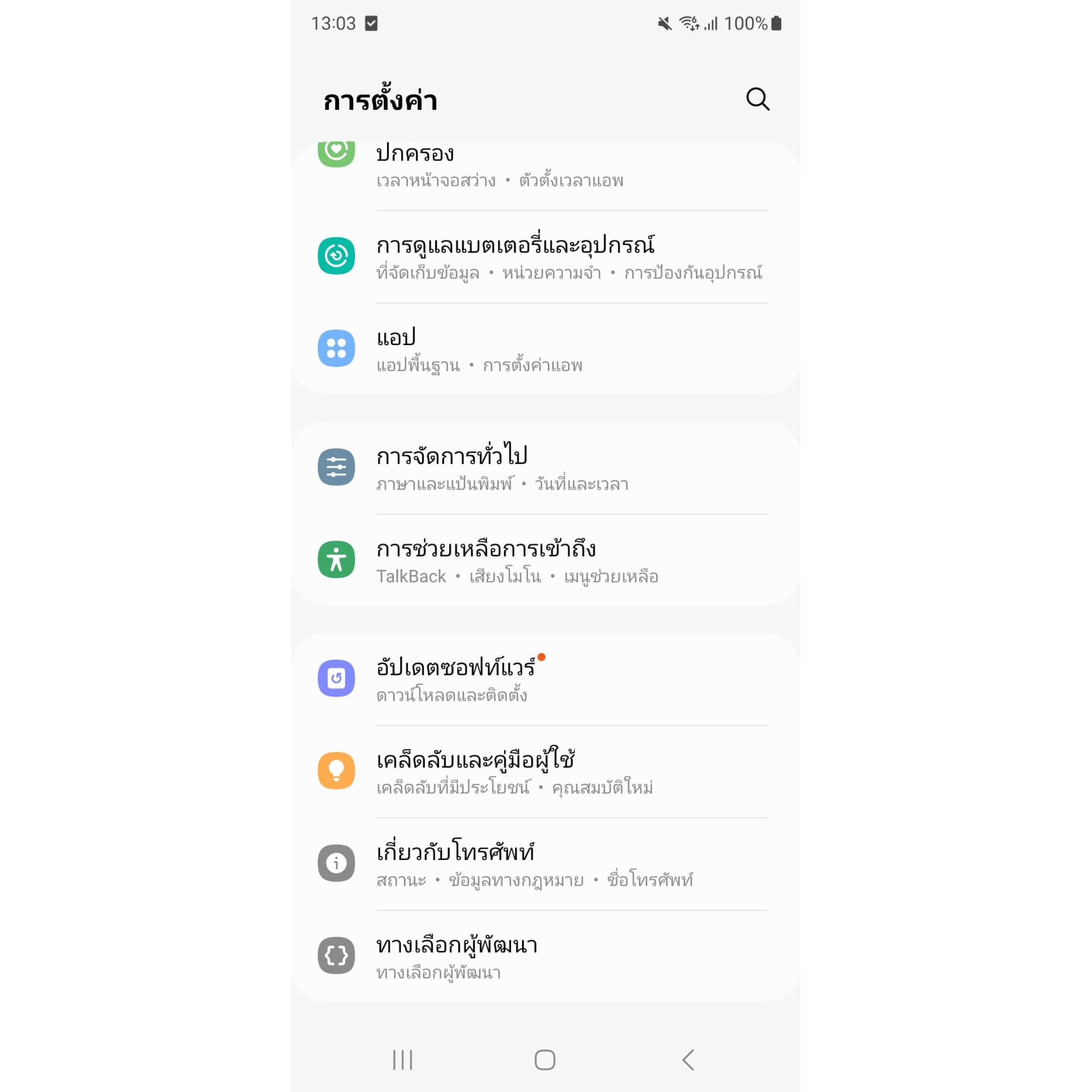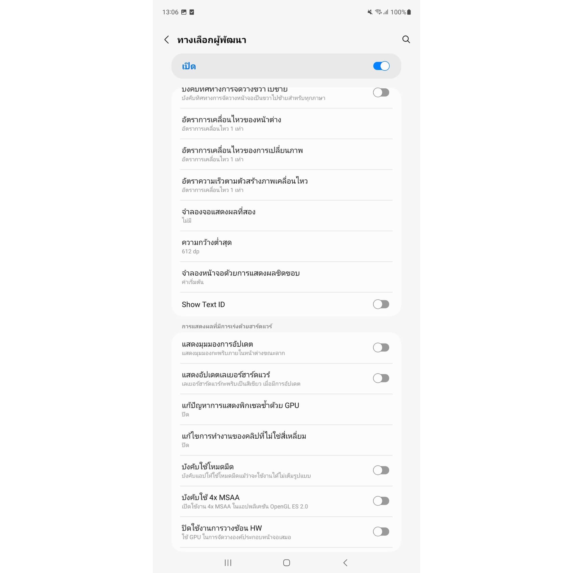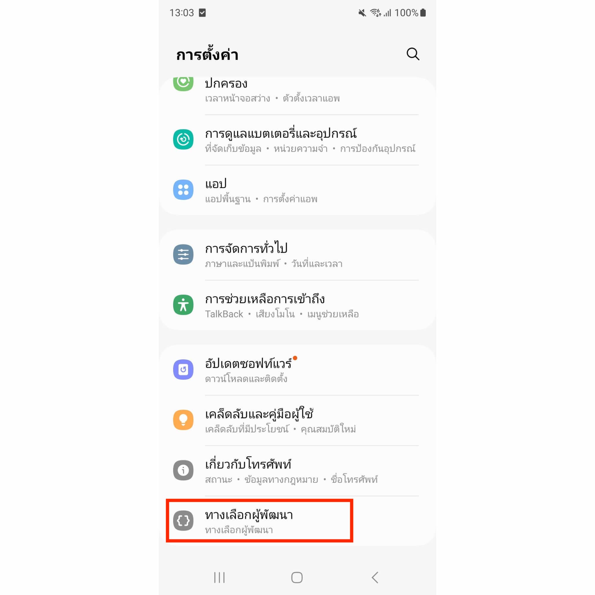 พอกดครบแล้วให้เราออกมาหน้าตั้งค่าก่อน แล้วเลื่อนลงมาล่างสุดจะเจอกับโหมด “ทางเลือกผู้พัฒนา” ให้กดเข้าไป