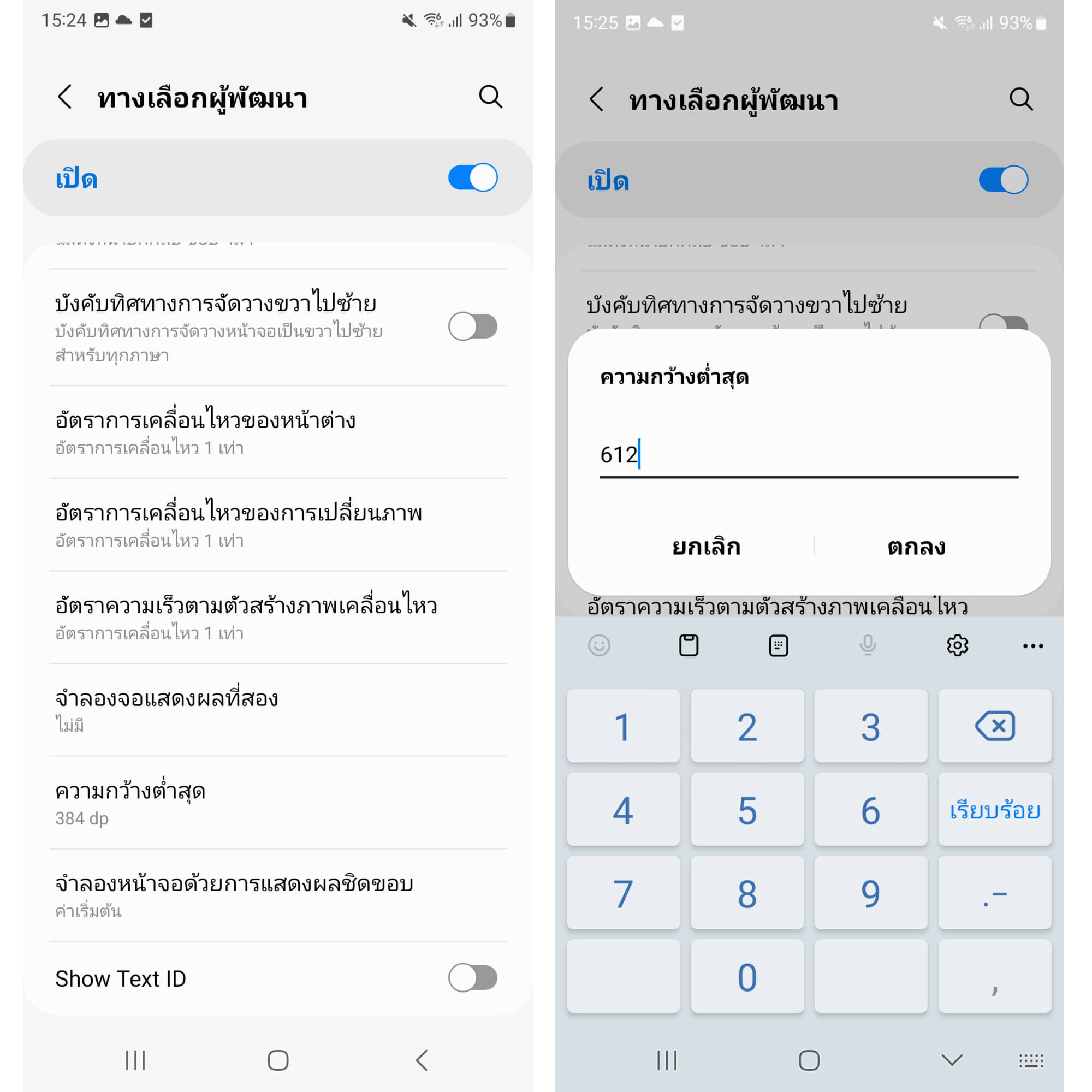 แล้วเลื่อนลงหรือค้นหา คำว่า “ความกว้างต่ำสุด” พอเจอแล้วให้เรากดเพื่อ “เปลี่ยนเลขจาก 384 เป็น 612”