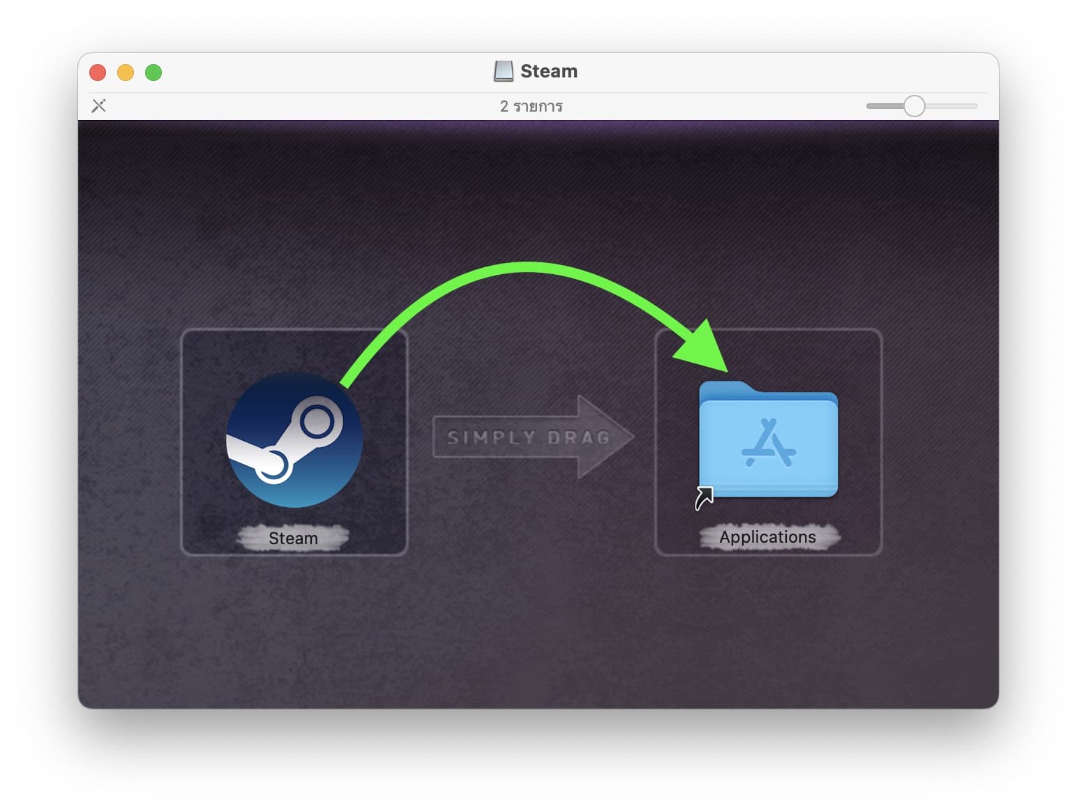 ลากไอค่อน Steam ไปใส่ไว้ในโฟล์เดอร์ Applications ก็เป็นอันเสร็จ!