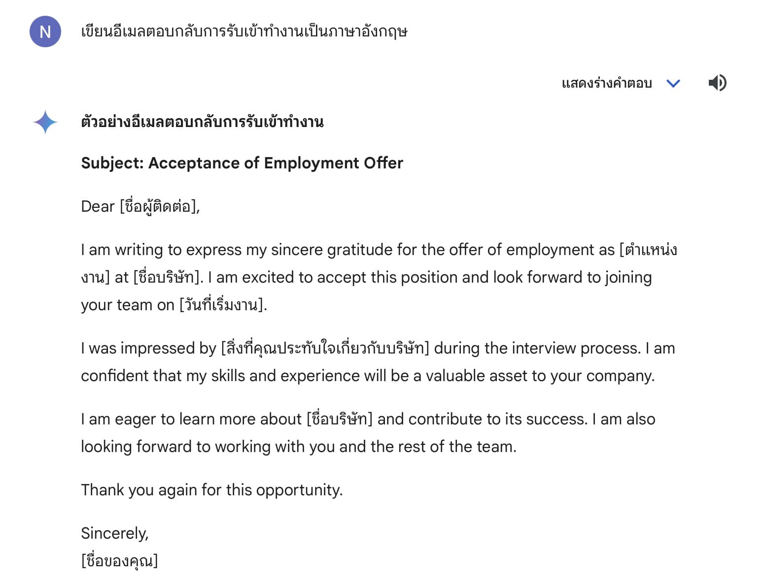 เขียนอีเมล : เขียนอีเมลตอบกลับการรับเข้าทำงานเป็นภาษาอังกฤษ