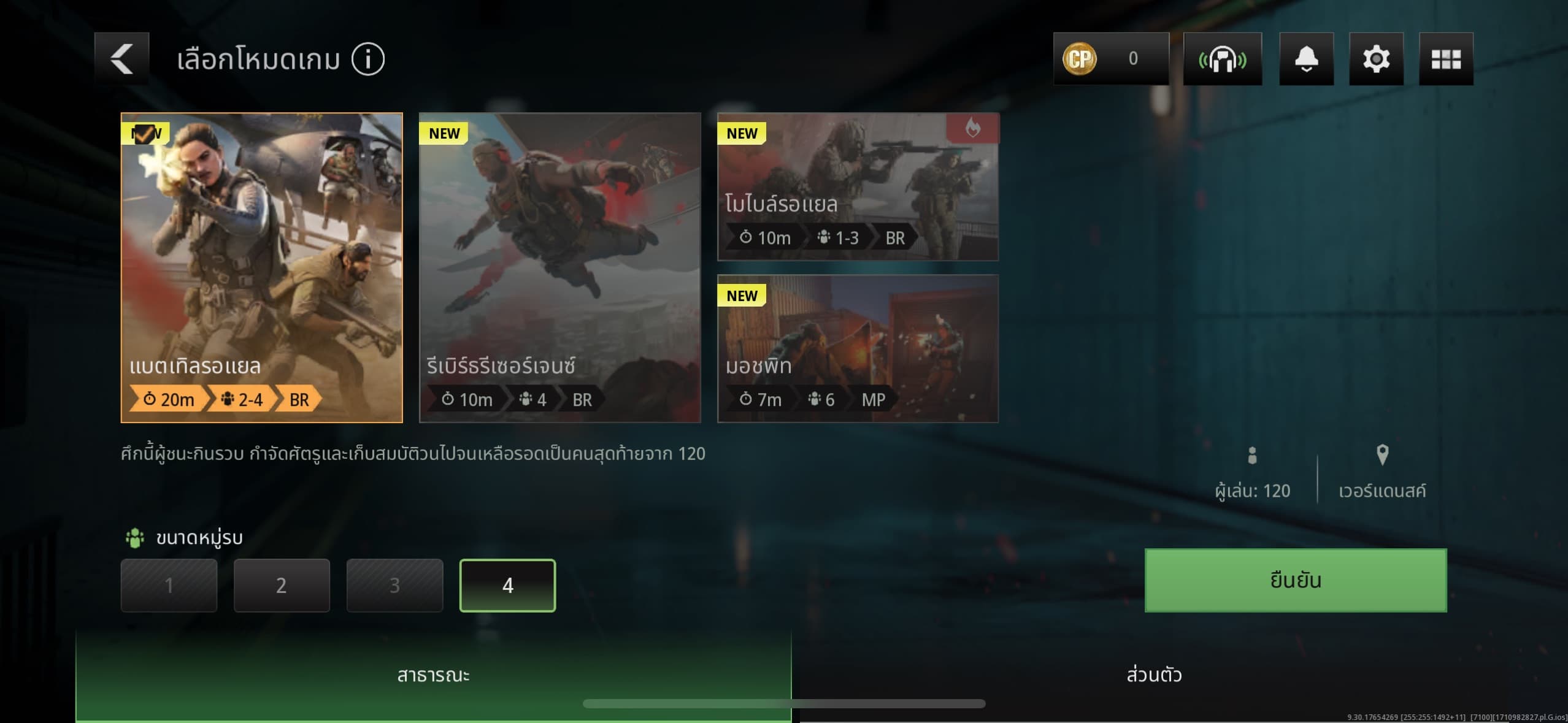 นี่คือโหมดต่าง ๆ ในเกมที่เราสามารถเลือกเล่นได้ สามารถจับทีมได้สูงสุด 4 คน