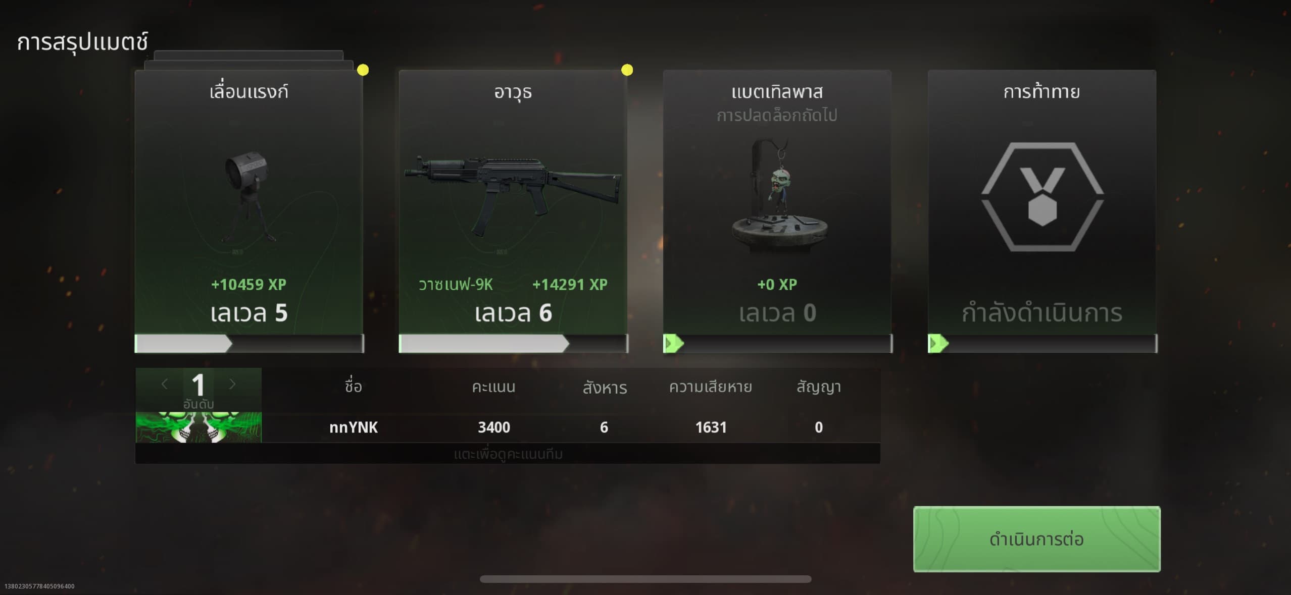 เมื่อเล่นจบจะมีการเพิ่มเลเวลของอุปกรณ์ปืน สรุปคะแนนให้ทราบเป็นปกติ