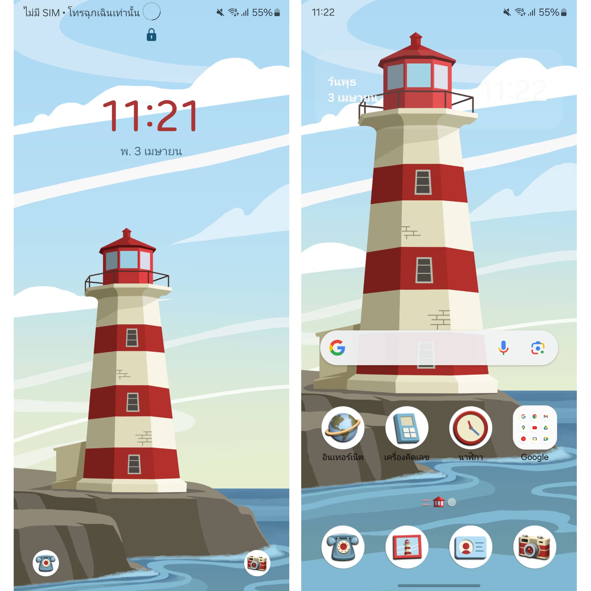 ธีมรูปทะเลสุดคลาสสิค ที่ให้บรรยากาศเหมือนเราอยู่ทะเล ซึ่งทำให้ผ่อนคลายมาก ใครสายมินิมอลต้องโหลด!