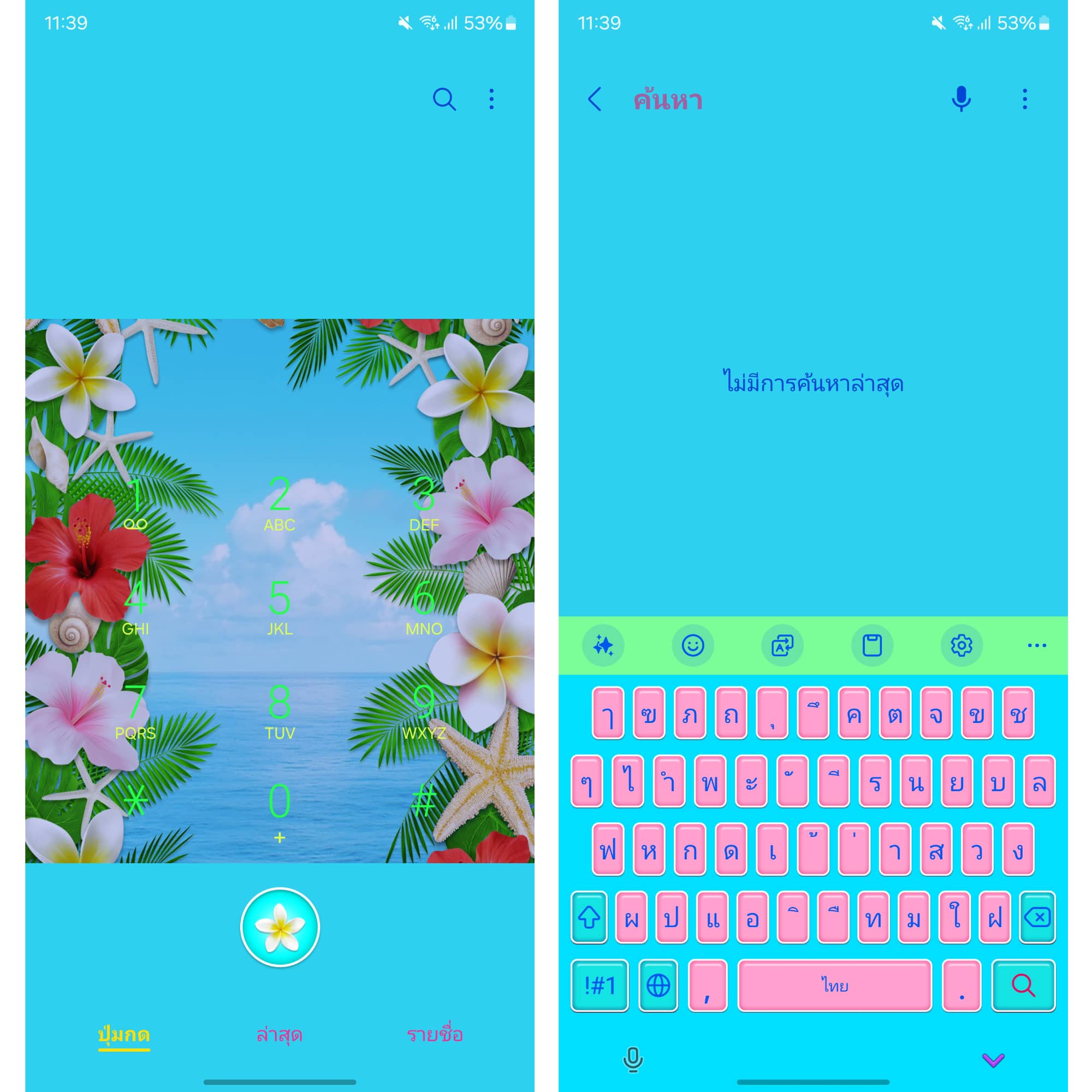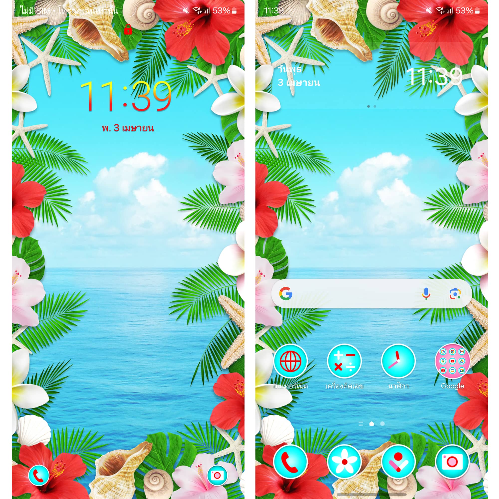 ธีมลายดอกสีสดใส พร้อมภาพน้ำทะเลสีฟ้าสด ธีมนี้ใครที่ชอบแนวสีสดใสต้องชอบอย่างแน่นอน 🌺