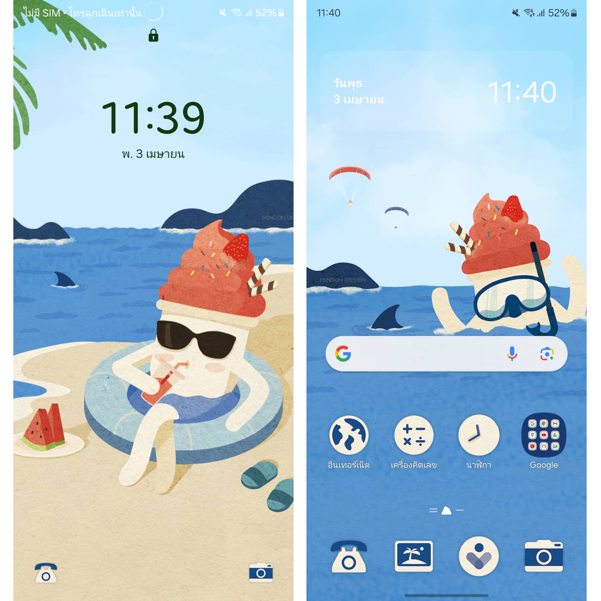 ธีมน้องไอติมต้อนรับน่าร้อนสุดน่ารัก โดยที่น้องไอติมเป็นภาพที่ถูกวาดด้วยสีน้ำ จึงทำให้ภาพดูพิเศษและสวย🎨✍🏻