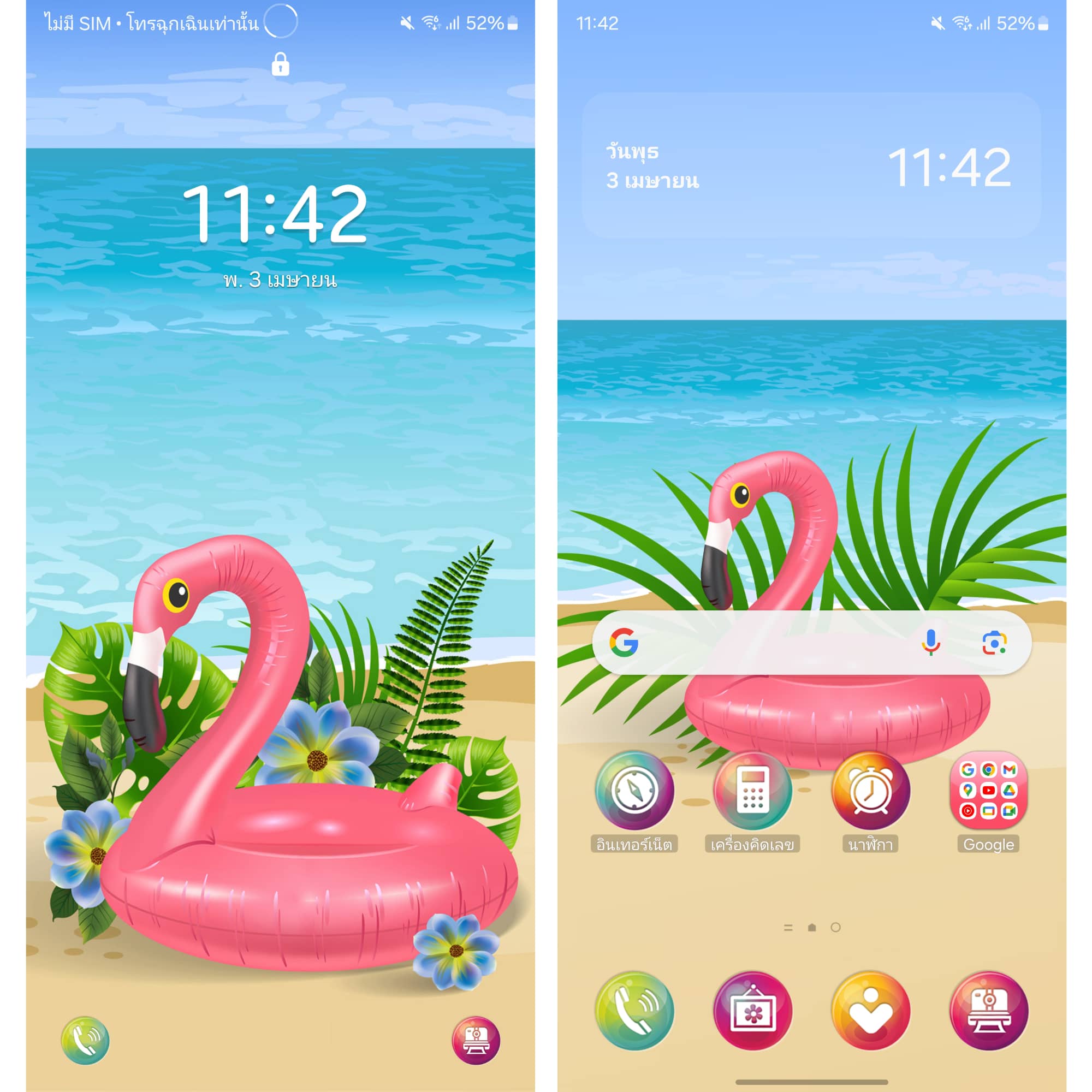 ธีมนกฟลามิงโก้ สีมชมพู!!!! ที่มาพร้อมกับภาพน้ำทะเลสีสดใส ใครที่ชอบนกฟลามิงโก้ต้องมาโหลดธีมนี้กันแล้ว☺️