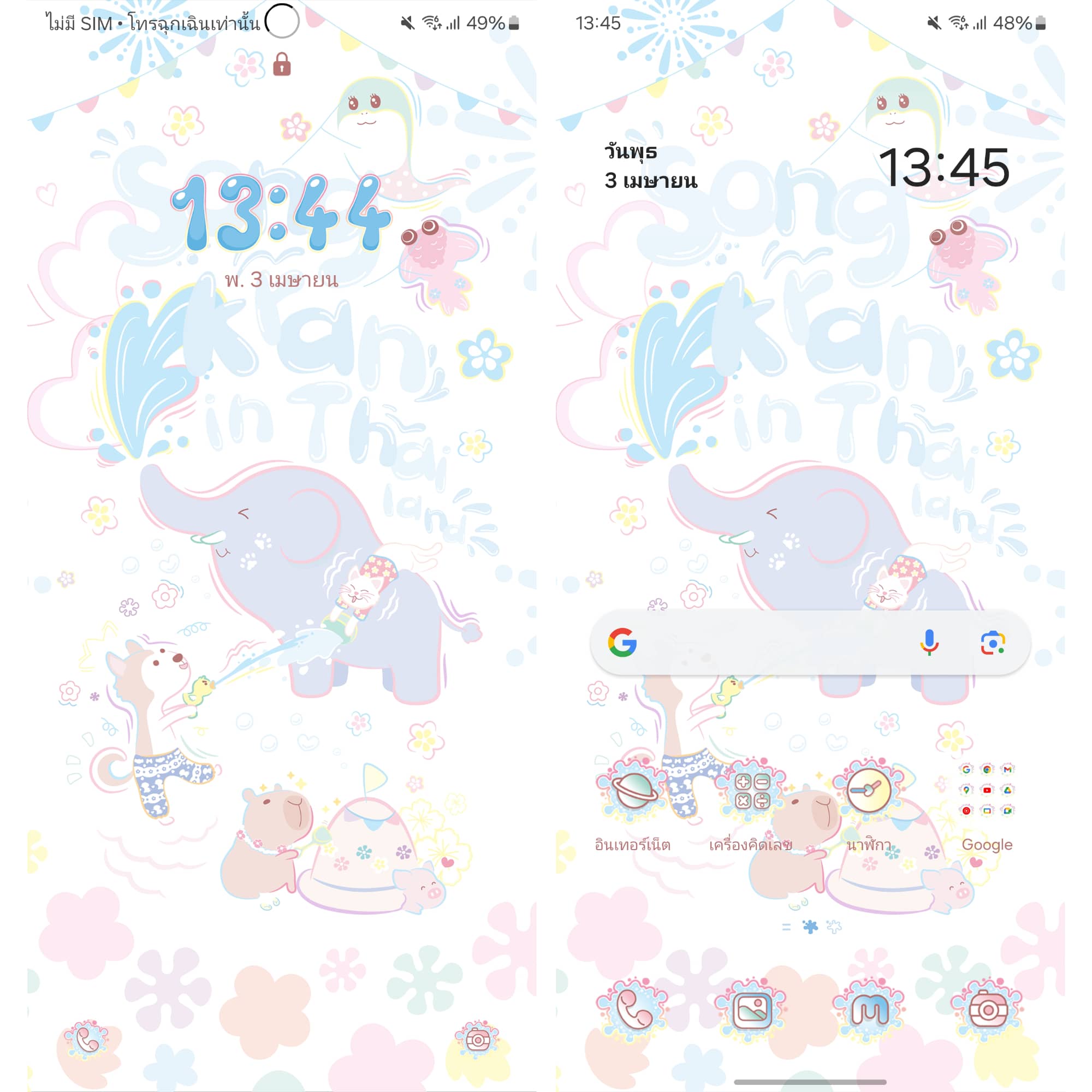 ธีมช้างน้อยสุดน่ารัก ซึ่งธีมนี้ออกแบบโดยคนไทยด้วยนะ ใครที่ชอบความน่ารักของช้างน้อย ต้องไปโหลดมาใช้งานกันแล้ว เหมาะกับช่วงสงกรานต์เมืองไทยมาก🔫💧