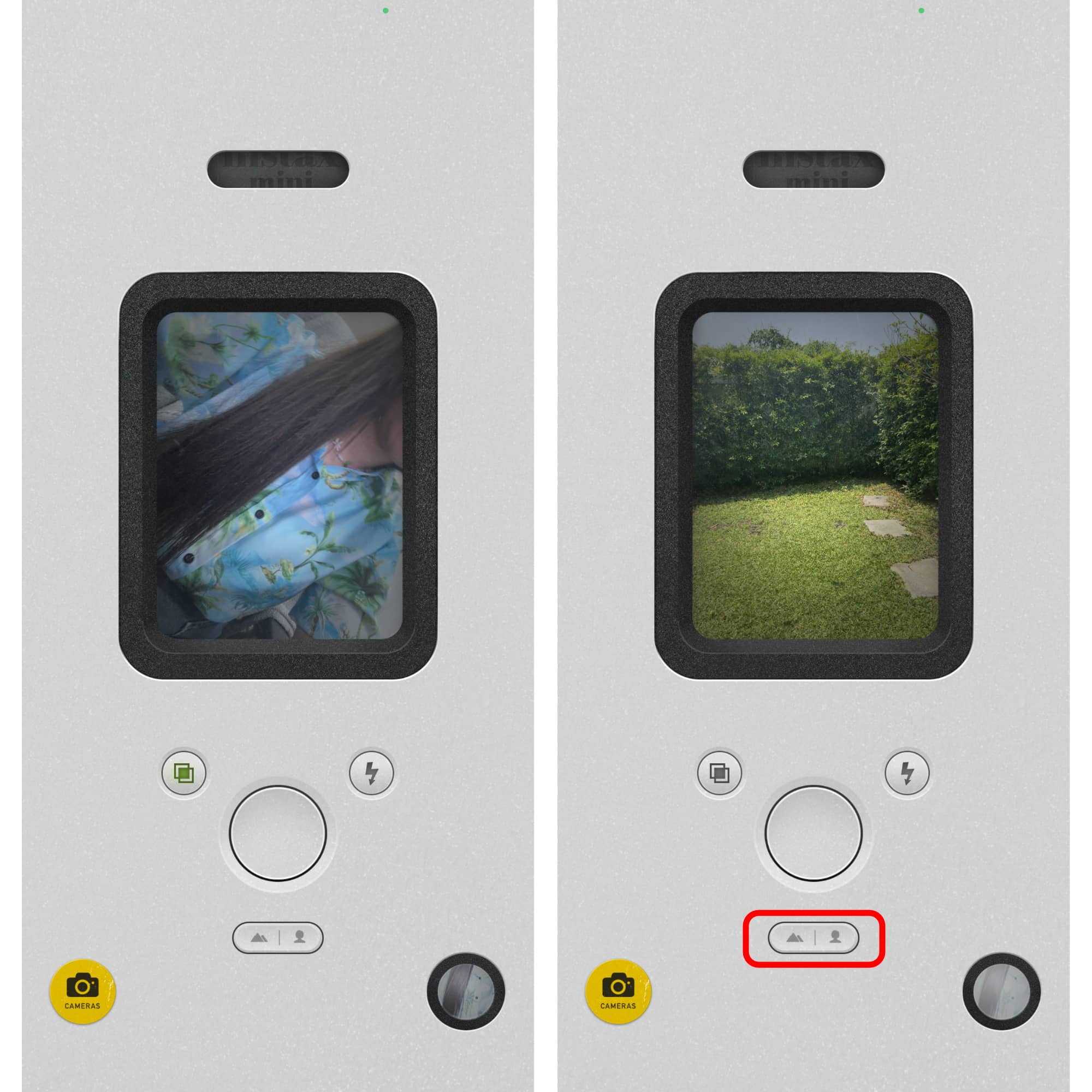 แอปนี้ใช้งานง่ายมาก โดยแอปนี้จะใช้เป็นกล้องฟิล์ม Instax Mini ในการถ่ายนะ และถ้าเราต้องการกลับกล้องในการถ่ายให้กด “รูปภูเขาและรูปคน” ด้านล่างได้เลย