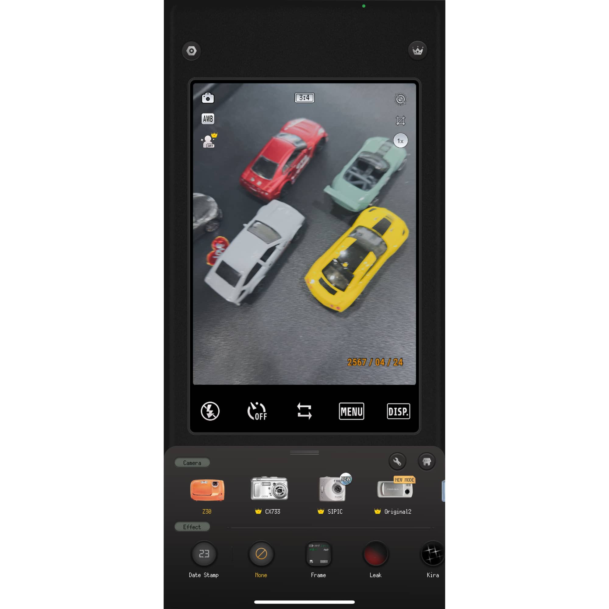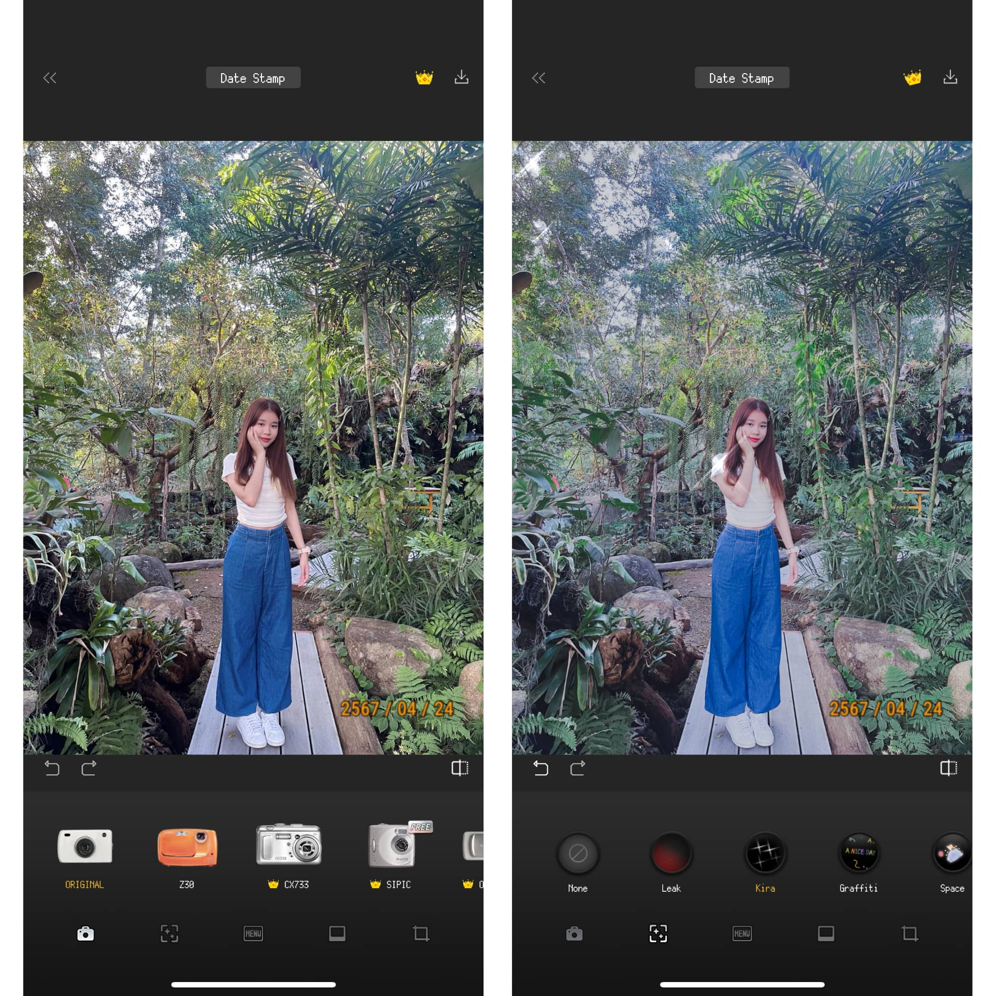 พอนำเข้ารูปมาในแอป ตัวแอปจะสามารถเปลี่ยนสไตล์กล้องฟิล์มต่าง ๆ ได้ หรือจะเพิ่มเอฟเฟกต์