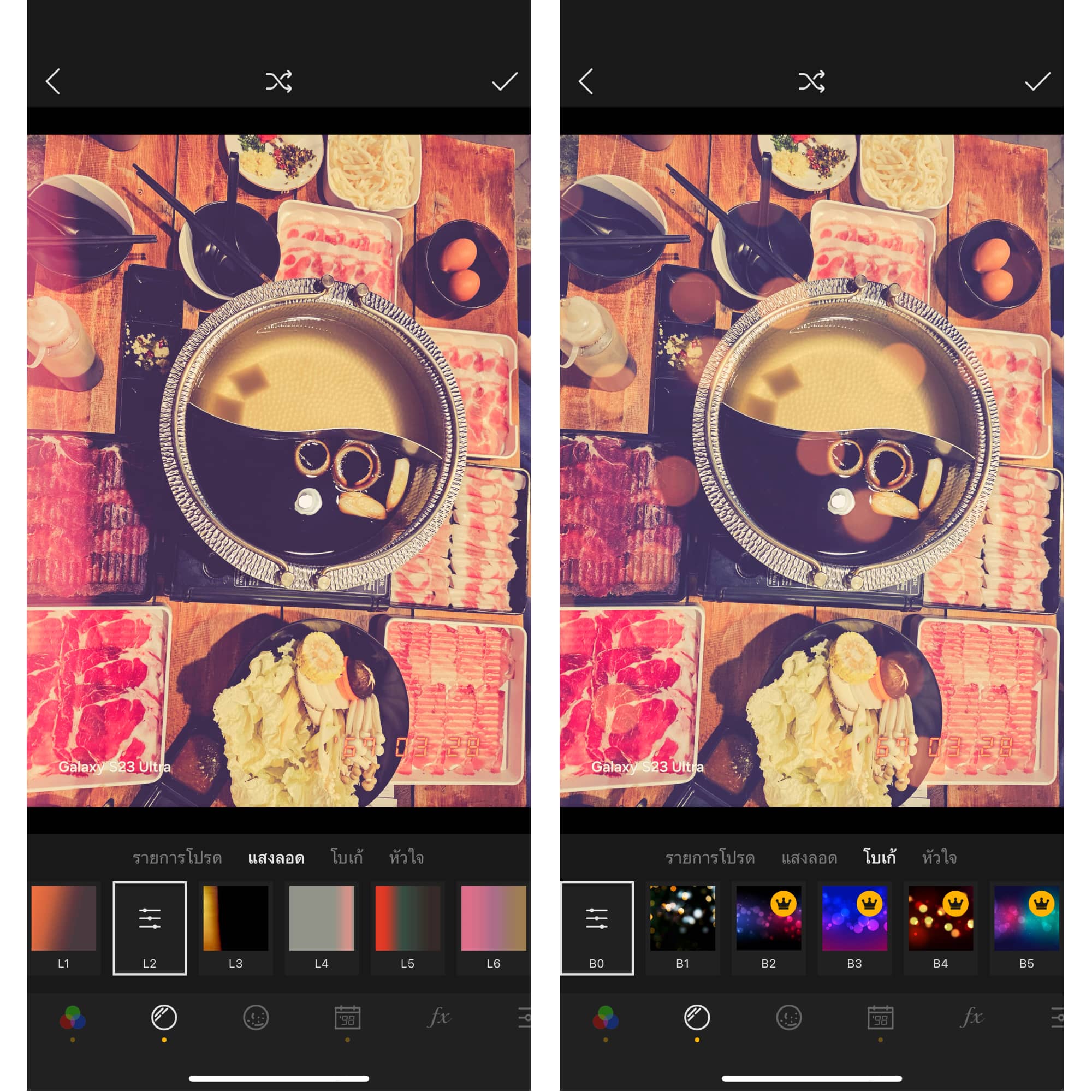 โดยที่แอปนี้เราสามารถตกแต่งรูปได้ตามใจเลย เพราะมีของตกแต่งภายให้ใช้มากมาย เช่น แสงลอด โบเก้