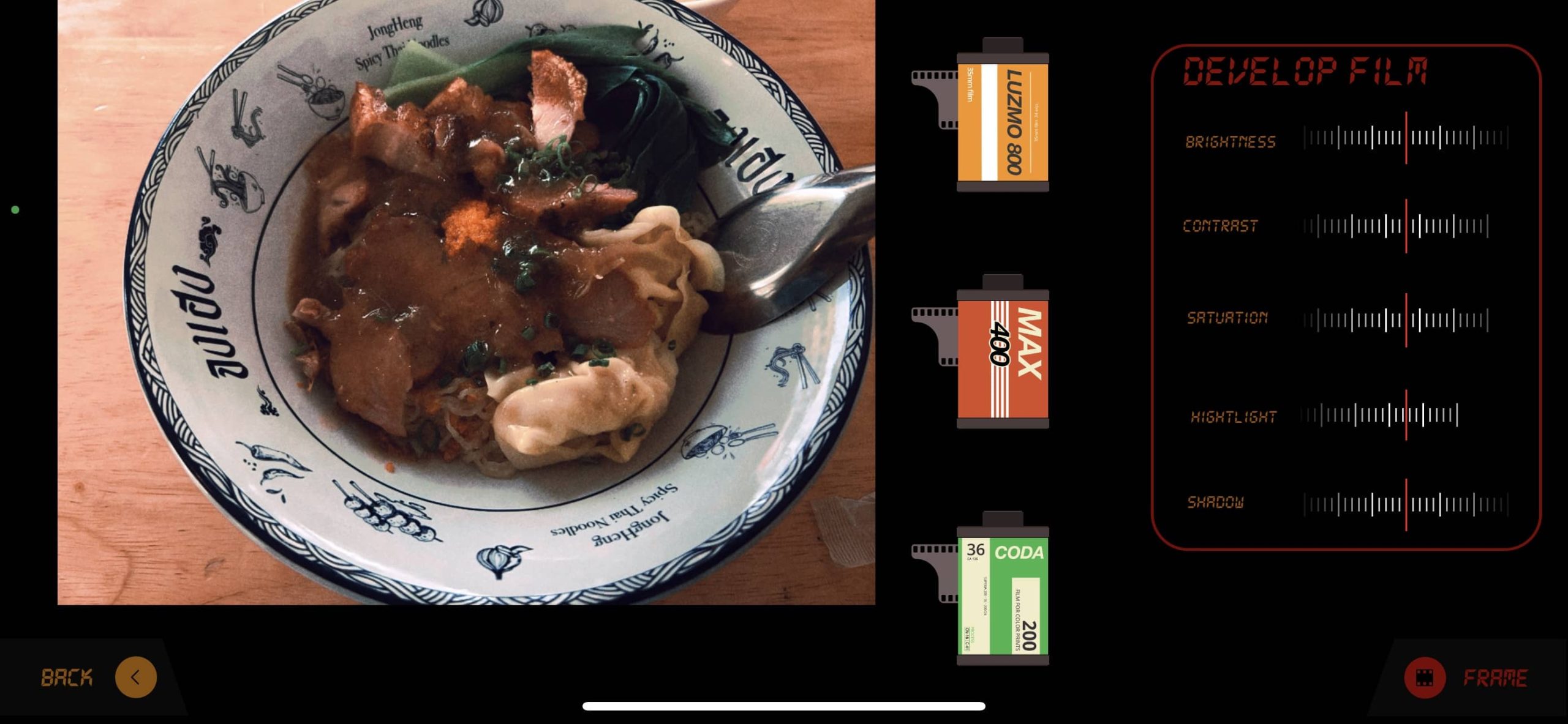 และแอปนี้มีความเจ๋งอย่างนึง คือถ้าเราถ่ายรูปหรือนำรูปเข้ามาในแอป ตัวแอปจะขึ้นรูปเป็นภาพจาง ๆ ก่อน แล้วค่อย ๆ เข้มขึ้น จนเห็นรูปจากกล้องฟิล์มแบบชัด ๆ ซึ่งทีมงานคิดว่าฟีเจอร์นี้ของแอปทำให้รูปของเราดูสมจริงเหมือนถ่ายมาจากกล้องฟิล์มจริง ๆ เลย