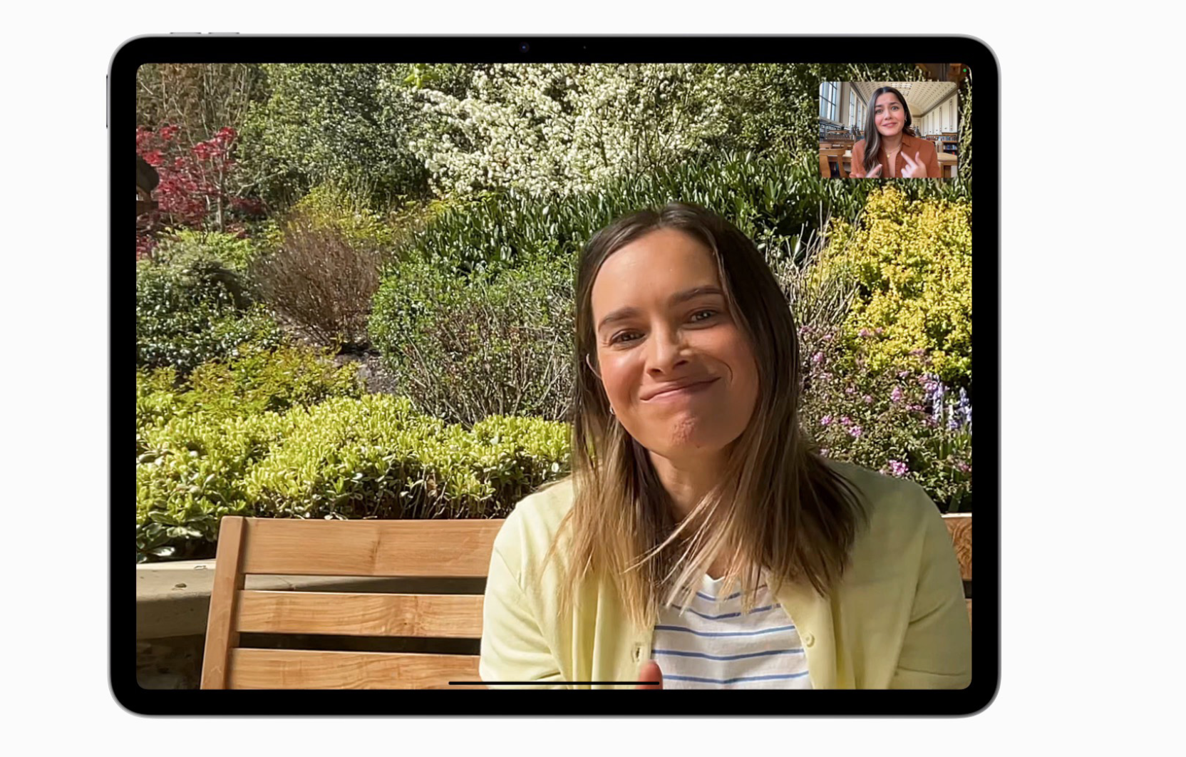 iPad Air รุ่น 11″, 13″ ใหม่ใช้กล้องหน้า Ultra-Wide ความละเอียด 12MP แบบแนวนอน รองรับฟีเจอร์ “จัดให้อยู่ตรงกลาง” ช่วยให้ผู้ใช้อยู่ตรงกลางหน้าจอเสมอระหว่างสนทนาด้วยวิดีโอ