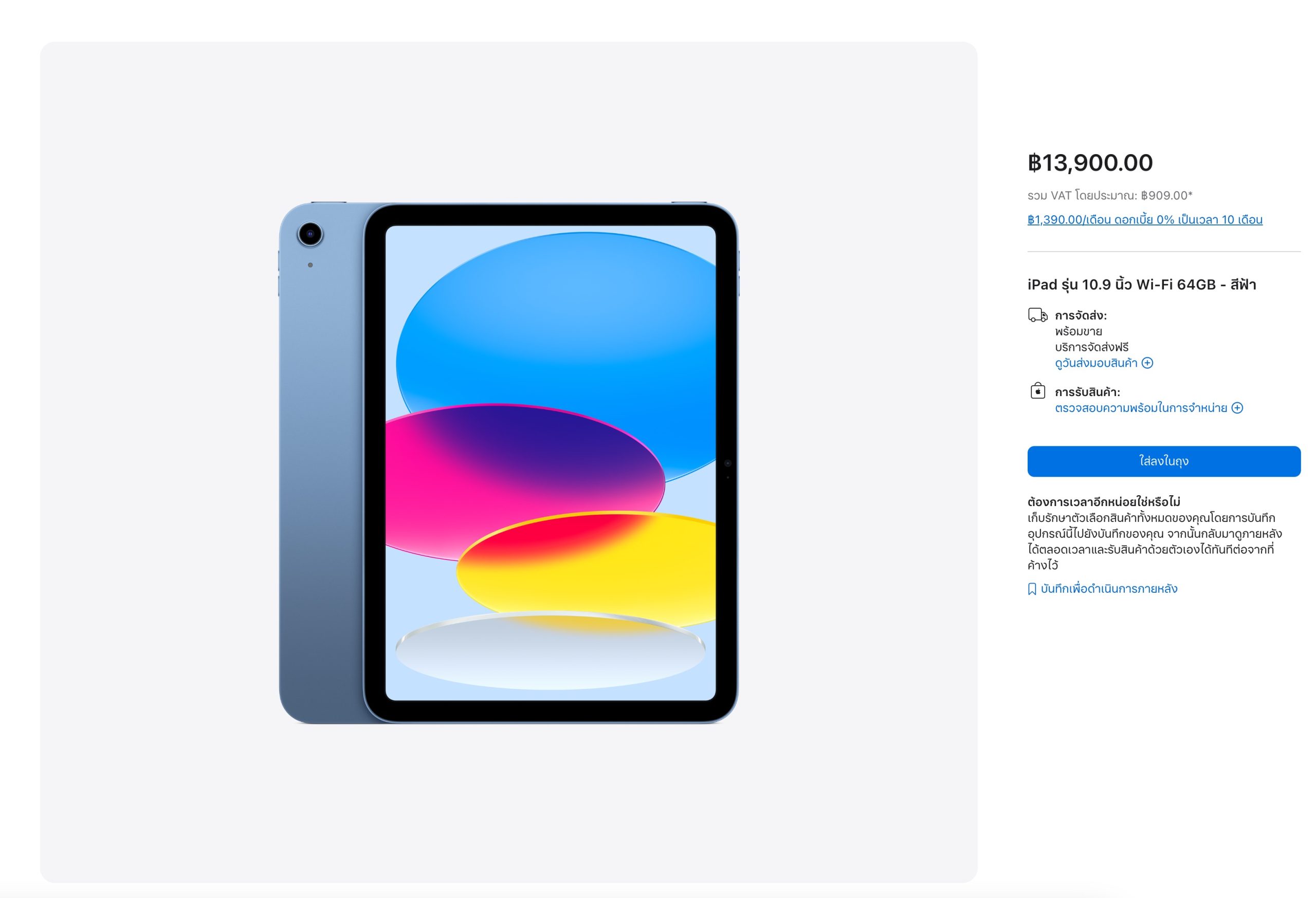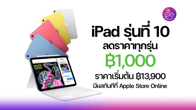 Apple ปรับลดราคา iPad รุ่นที่ 10 ทุกรุ่น ทุกความจุ โดยครั้งนี้ปรับลดราคา 1,000 บาท มีผลทันที! ส่งผลให้ราคาเริ่มต้นอยู่ที่ 13,900 บาท