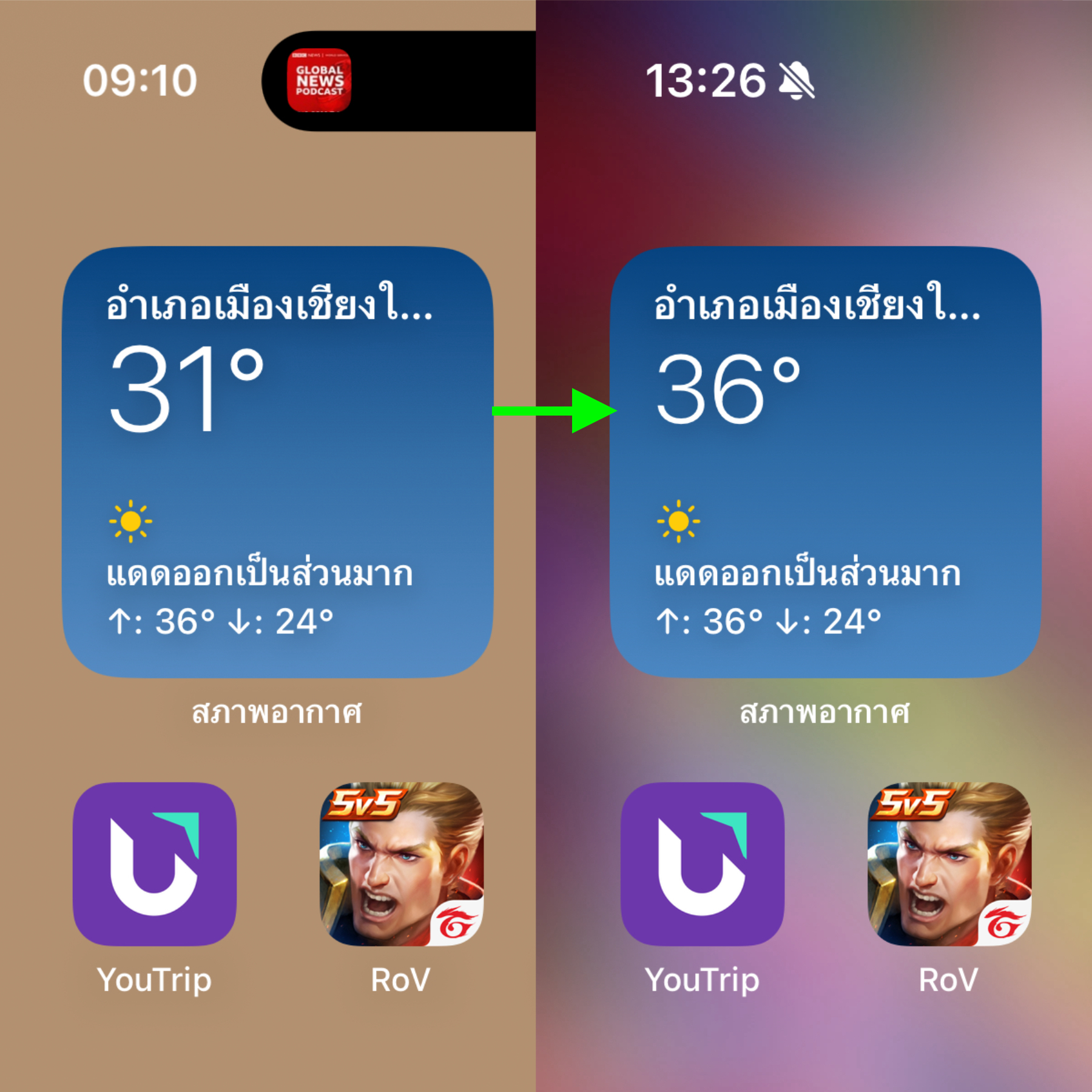 วิดเจ็ตแอปสภาพอากาศถูกปรับเปลี่ยนให้ใช้ตัวหนังสือที่เล็กลง ทำให้ภาพรวมของวิดเจ็ตสภาพอากาศดูสบายตา และดูมินิมอลมากขึ้น