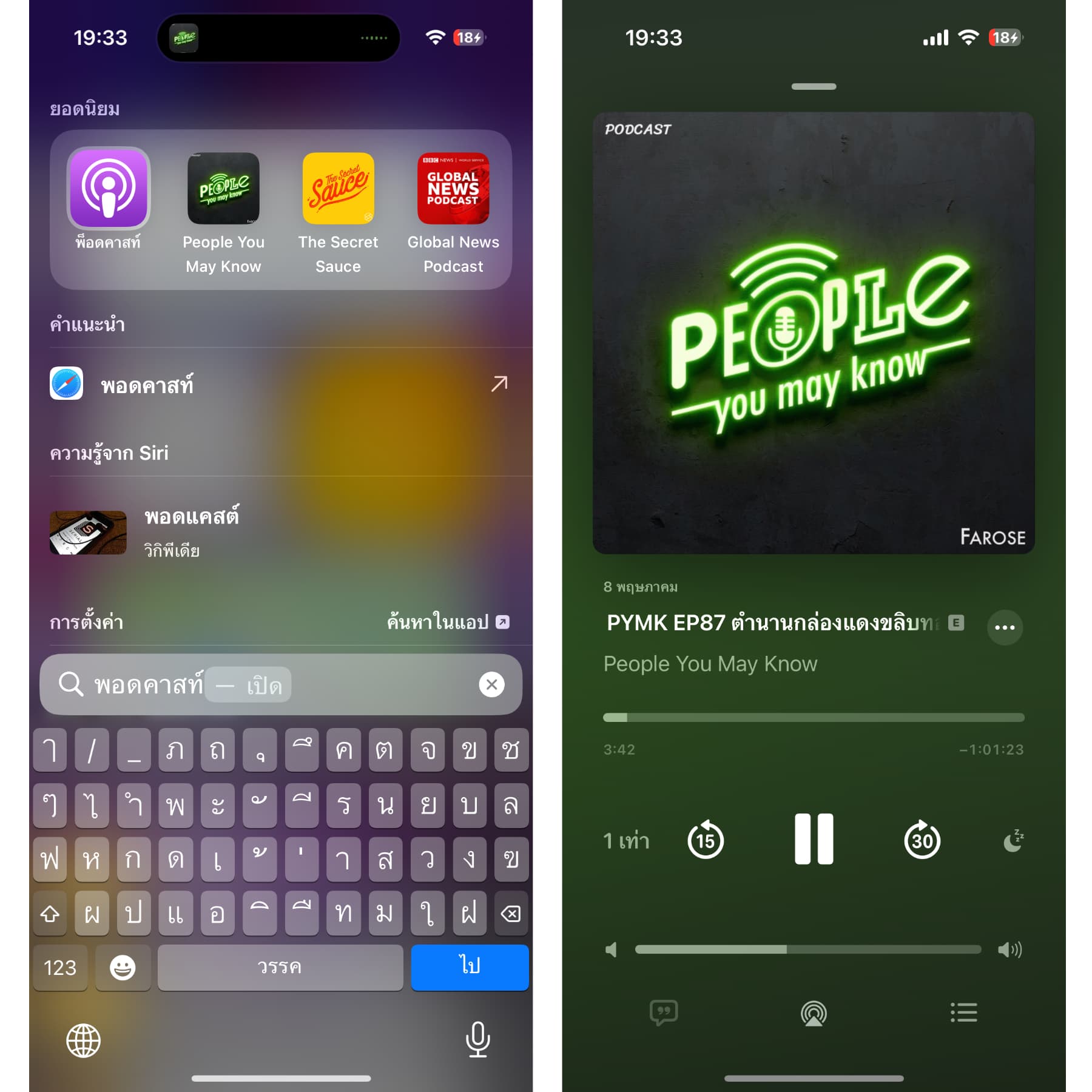 Spotlight Search จดจำพ็อดคาสท์ที่คุณฟังล่าสุด หากใช้งานหรือค้นหาคำที่เกี่ยวข้องก็จะมีการแนะนำขึ้นมาที่การค้นหา