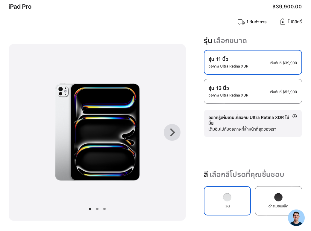 - iPad Pro ชิป M4 รุ่น 11″ เริ่มต้น 39,900 บาท