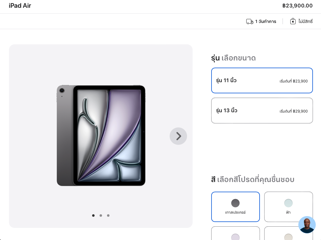 - iPad Air (รุ่นที่ 6) ชิป M2 รุ่น 11″ เริ่มต้น 23,900 บาท